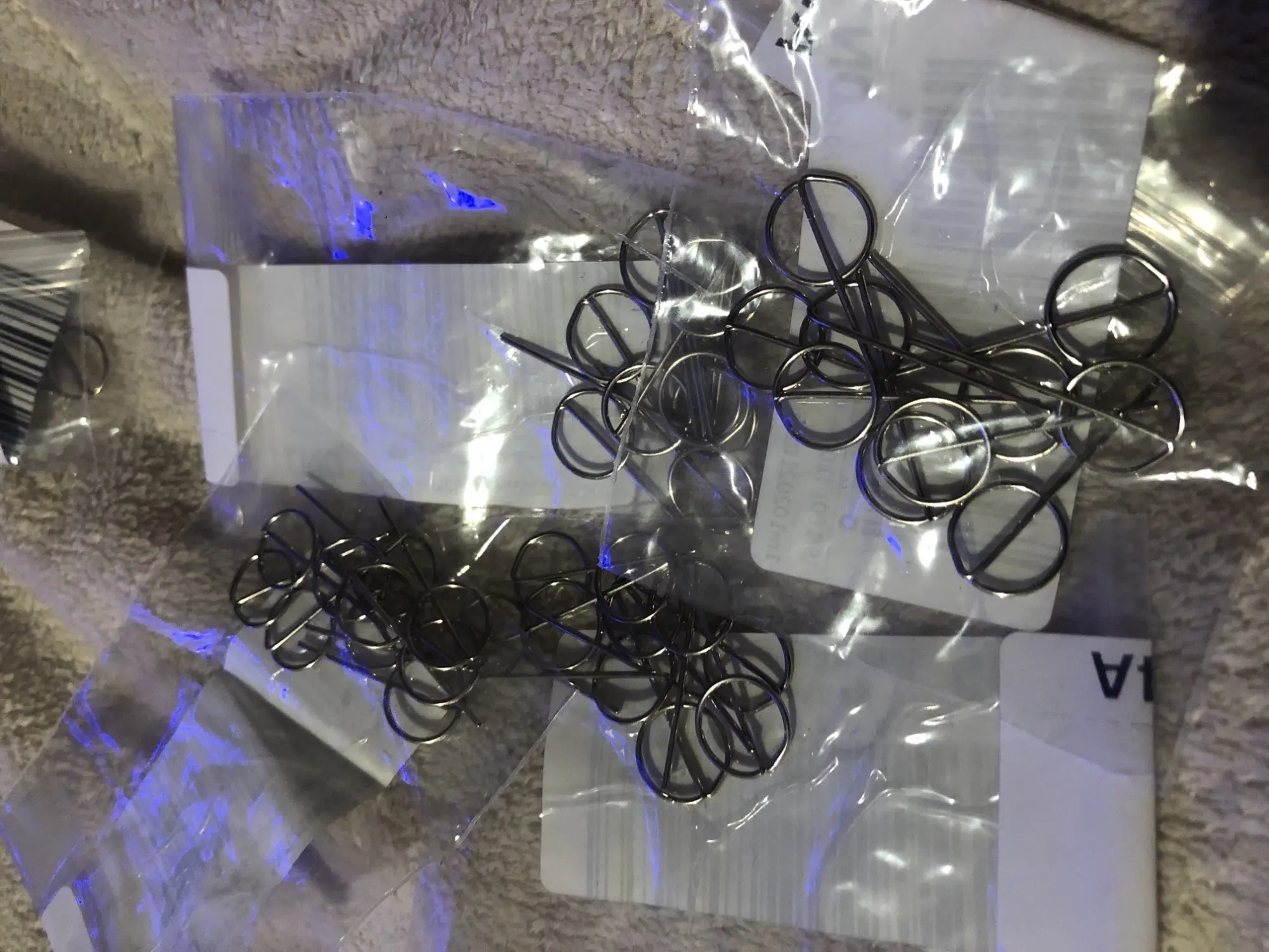скрепки крепкие, доставка быстрая. у меня проблема с обычными скрепками в виде перьев- при ношении с ключами игла облымывается, эти скрепки надёжнее.