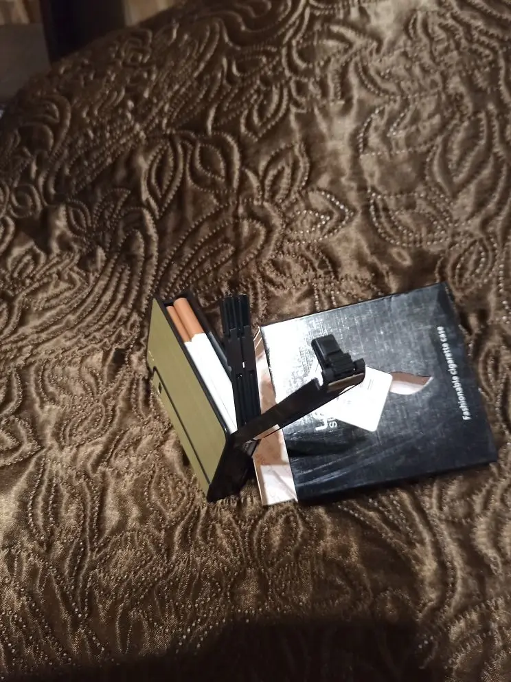 ОЧЕНЬ ДОЛГАЯ ДОСТАВКА. Не все сигареты проходят по высоте. Тонкие (дамские) сигареты не входят. Мало сигарет помещается в отсек, только 3,4 штуки. Зажигалка только такая как на видео. Если зажигалка чуть шире то отсек под зажигалку полностью не закроется.