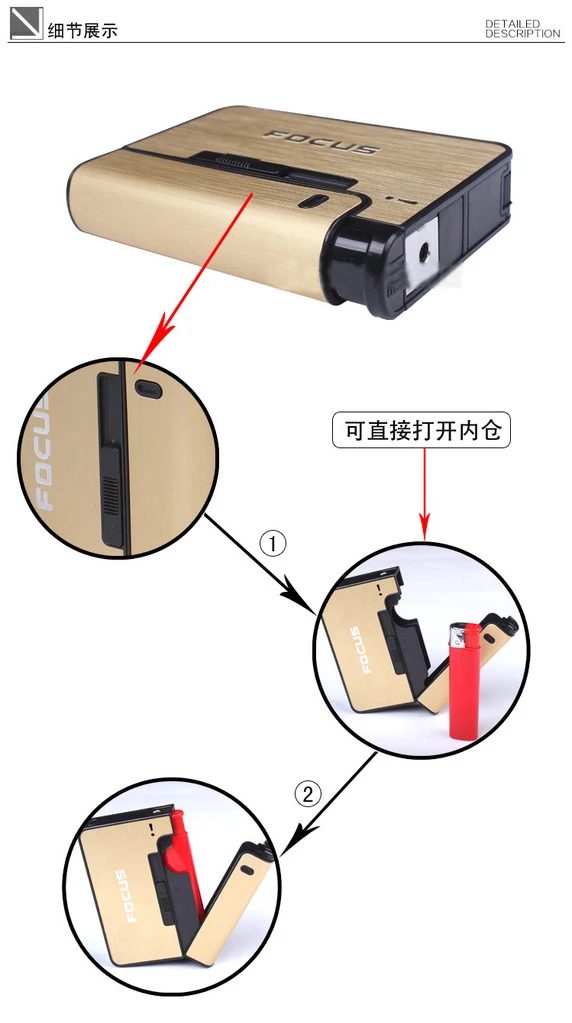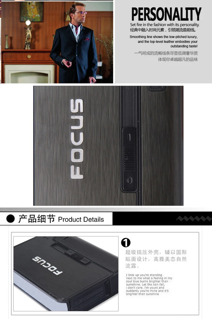FOCUS портативные металлические портсигары с керосиновой зажигалкой 10 шт. держатель для сигарет чехол Зажигалка гаджет для мужчин Рождественский подарок