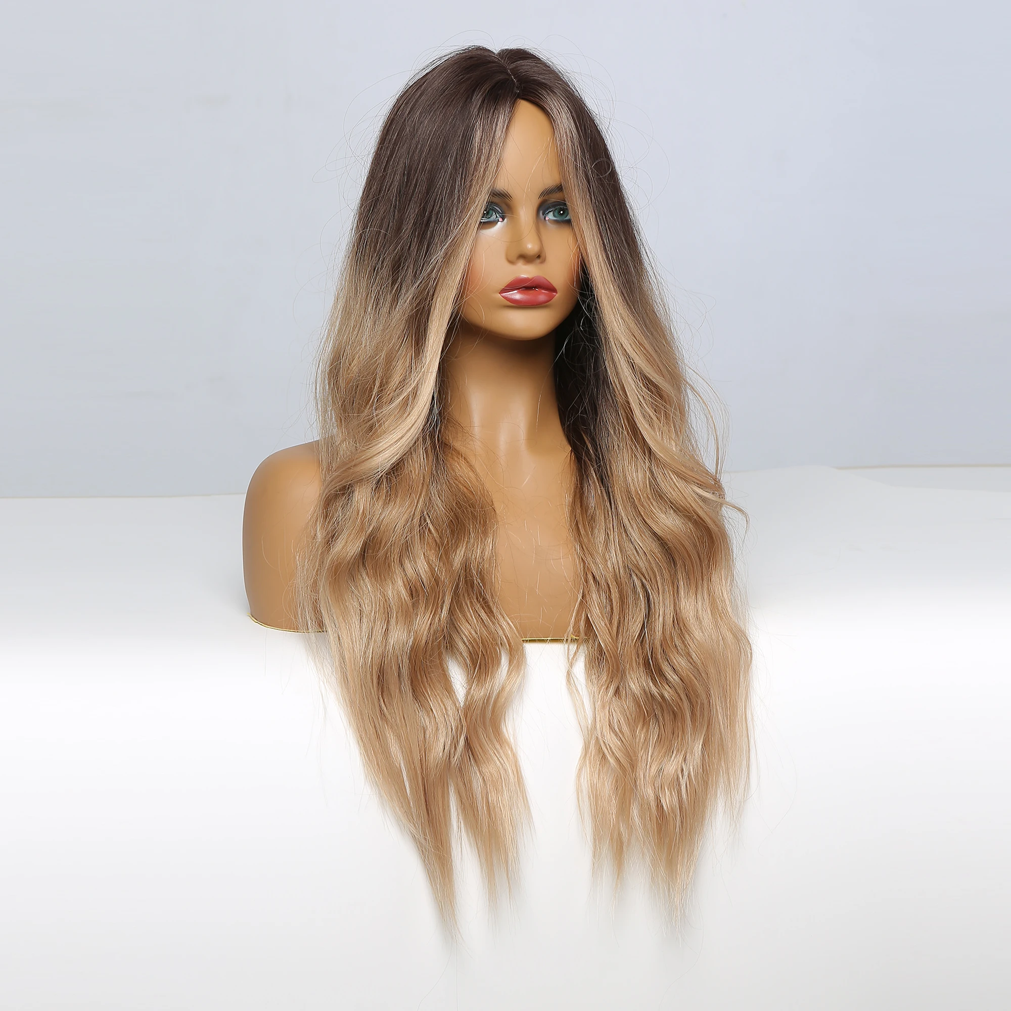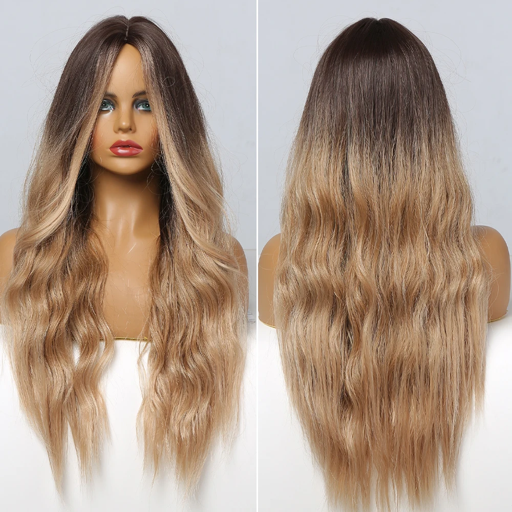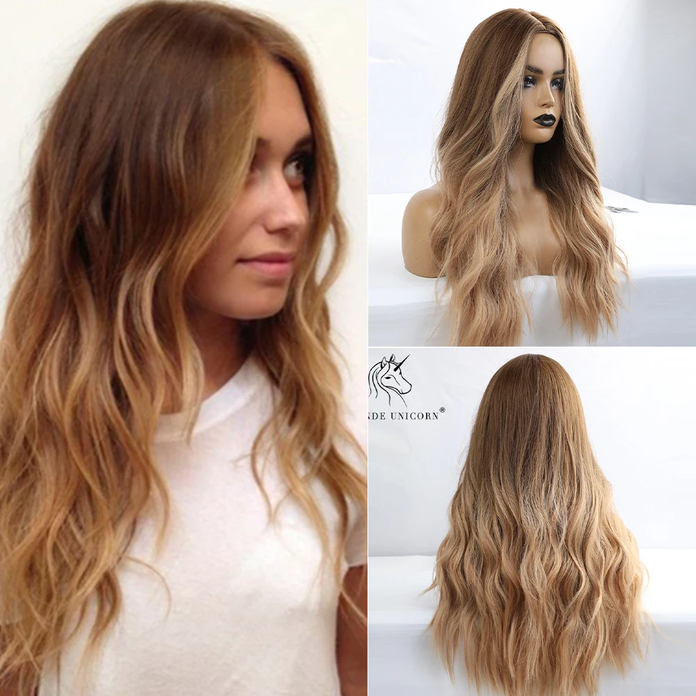 Блонд единорог средней длины натуральные волнистые омбре коричневый блонд парик с челкой для женщин синтетические волосы парики на каждый день термостойкие
