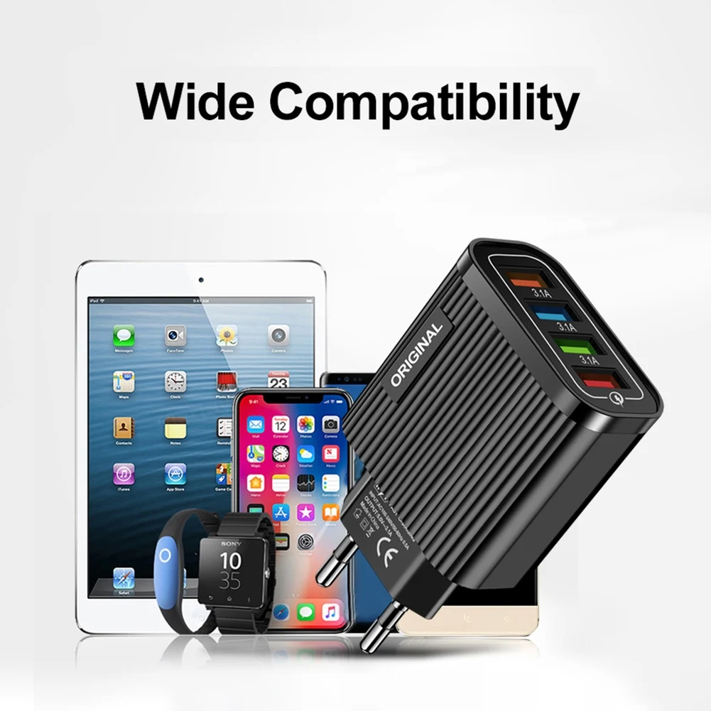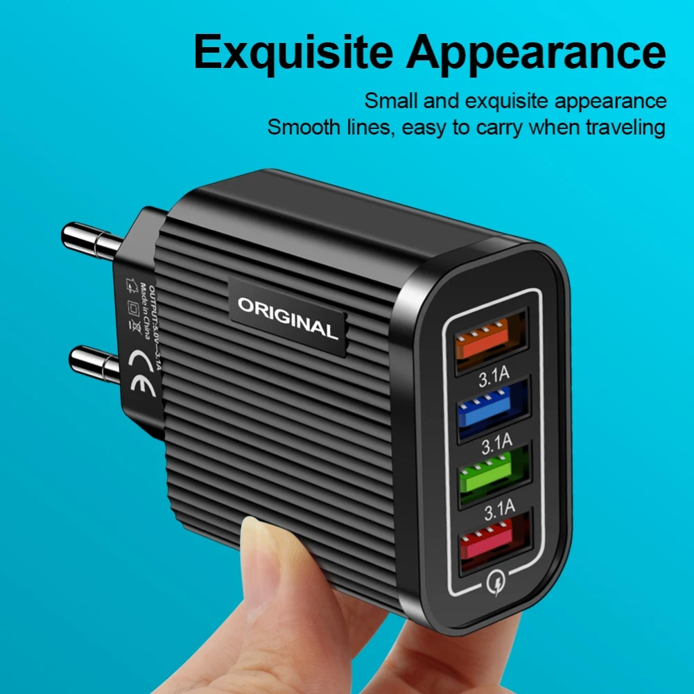 48 Вт QC 3,0 4 USB-порта штепсельная Вилка для ЕССША Быстрая зарядка для телефона адаптер для быстрой зарядки 2020