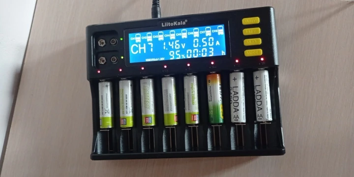 ёмкость аккумуляторов, которые заряжает, измеряется только количеством отданных ампер часов каждому аккумулятору. Просто замерить ёмкость не может! Распознает типы аккумуляторов и заряжает неплохо. Надписи на кнопках очень плохо видно!