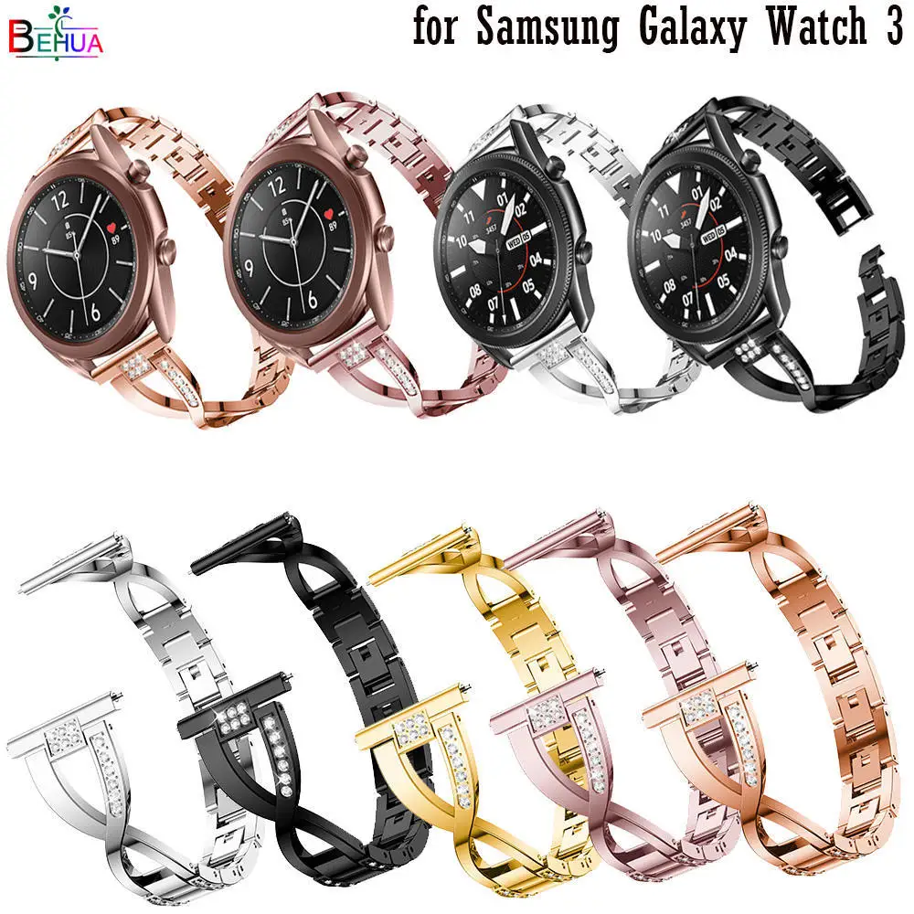 Ремешок металлический для наручных часов, сменный Браслет со стразами для Samsung Galaxy Watch 3 45 мм 41 мм