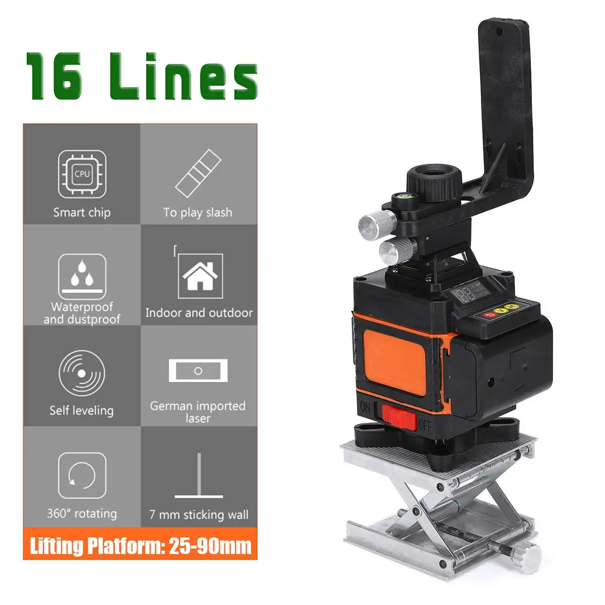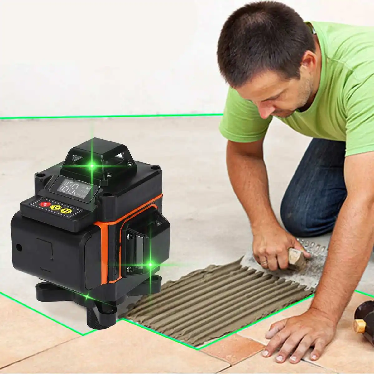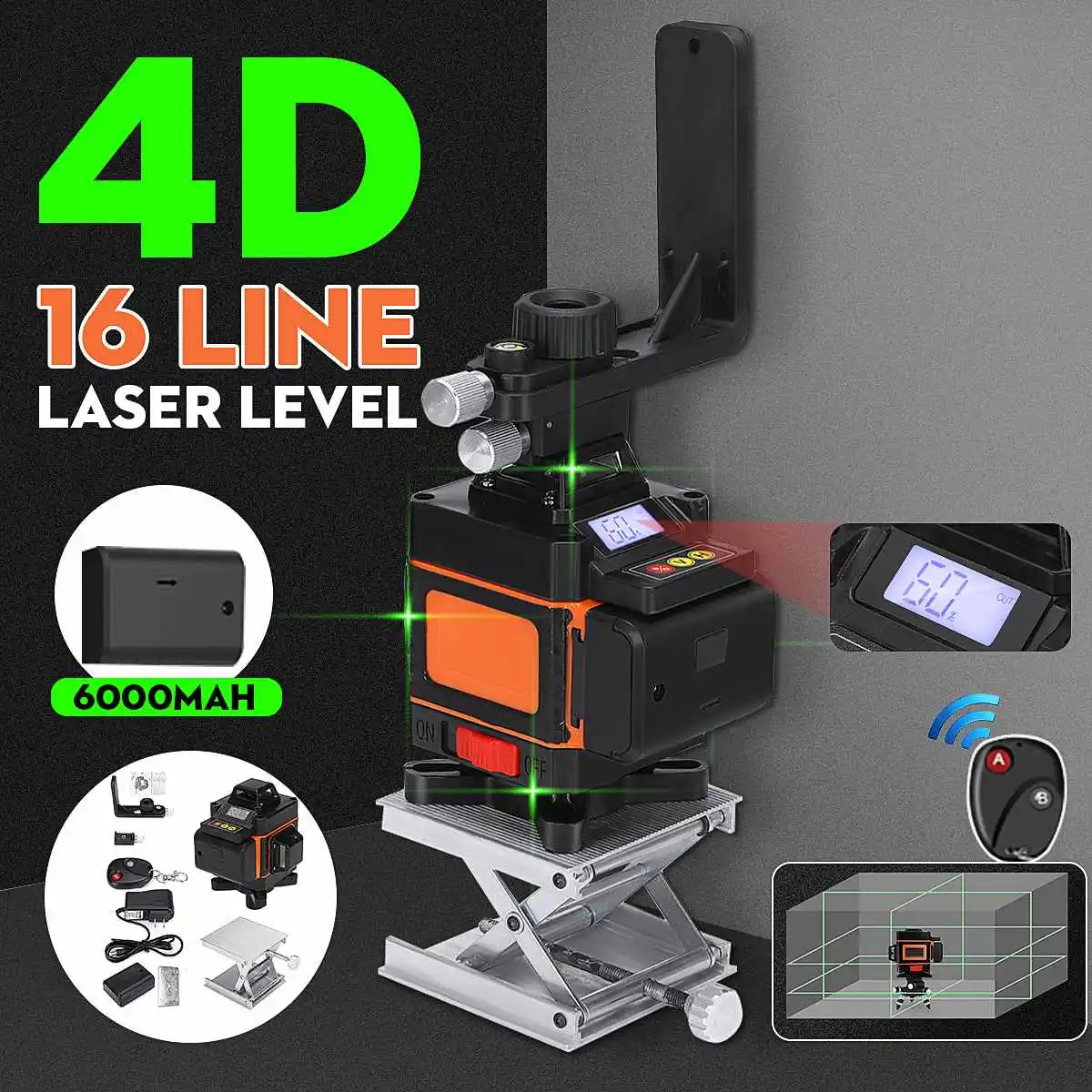 Лазерный уровень, самонивелирующийся, 1612 линий, 4D зеленый светильник зер, LED дисплей, 360 , горизонтальный, вертикальный, перекрестный пульт дистанционного управления