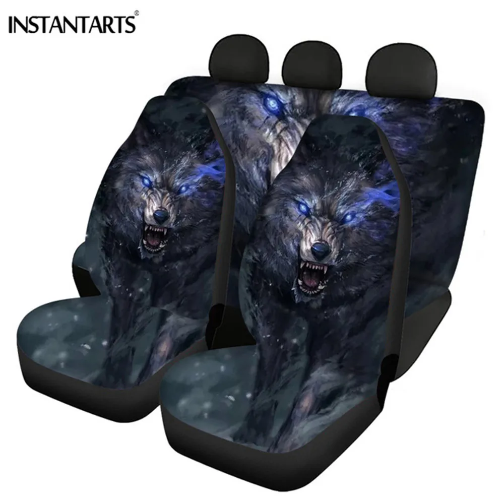 Чехлы на сиденья автомобиля INSTANTARTS с 3D принтом животных, полный комплект, удобное защитное покрытие на сиденья автомобиля 5 шт.компл., чехлы на передние и задние сиденья автомобиля