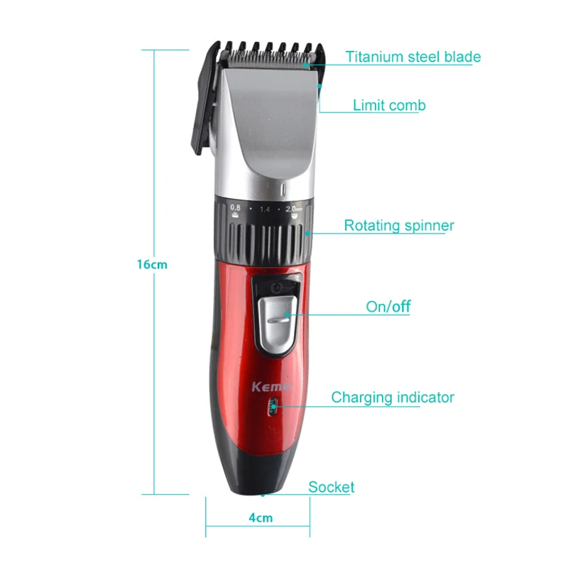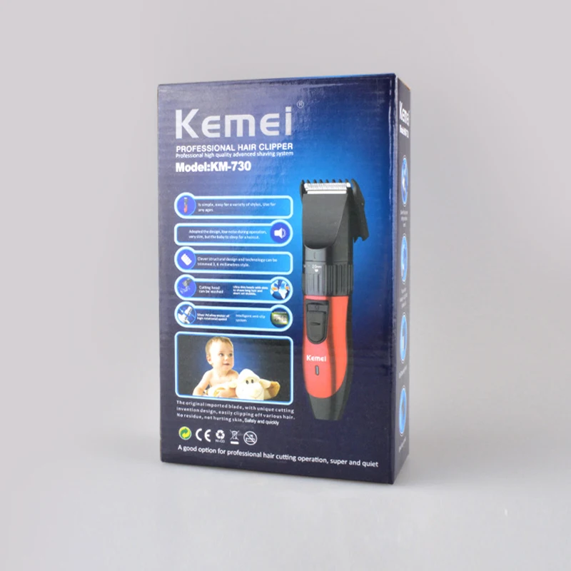 Профессиональная машинка для стрижки волос Kemei KM - 730 подходит для темперамента парикмахера, с изображением парикмахерских салонов.
