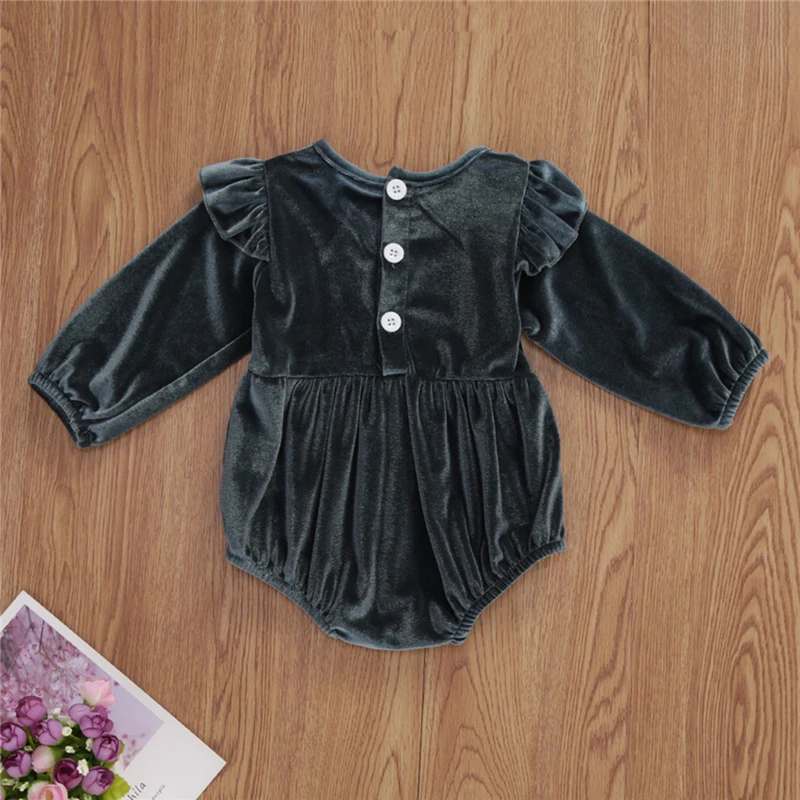 Комбинезон для мальчиков и девочек, осенний, однотонный, на пуговицах, с оборками, с длинным рукавом, 5 цветов, 0-18 м