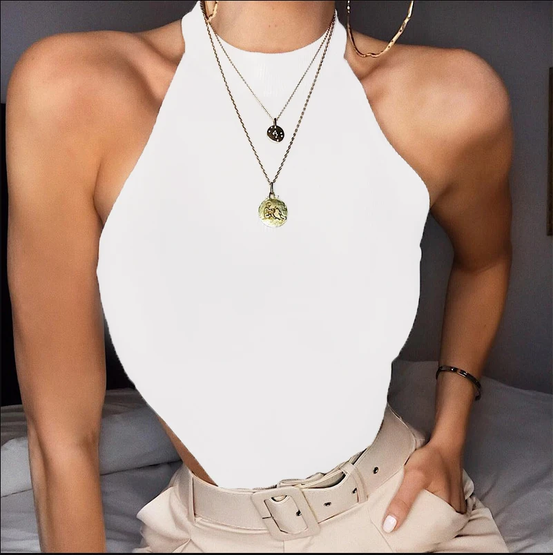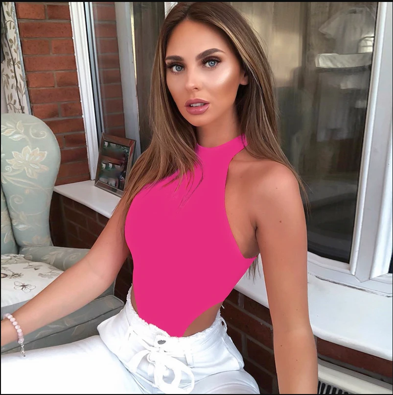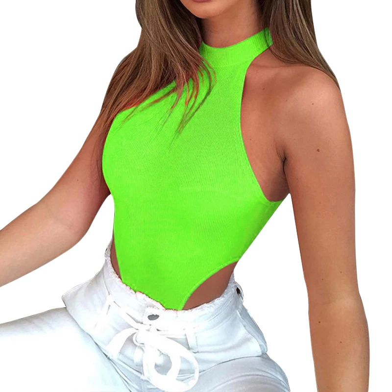 Женское облегающее Боди без рукавов, однотонное ФЛУОРЕСЦЕНТНОЕ облегающее Клубное модное боди с лямкой на шее, трико