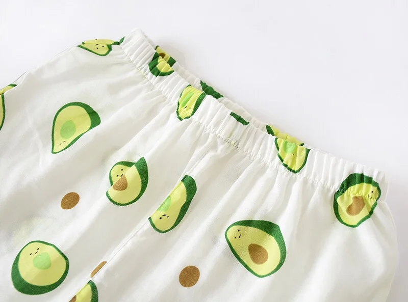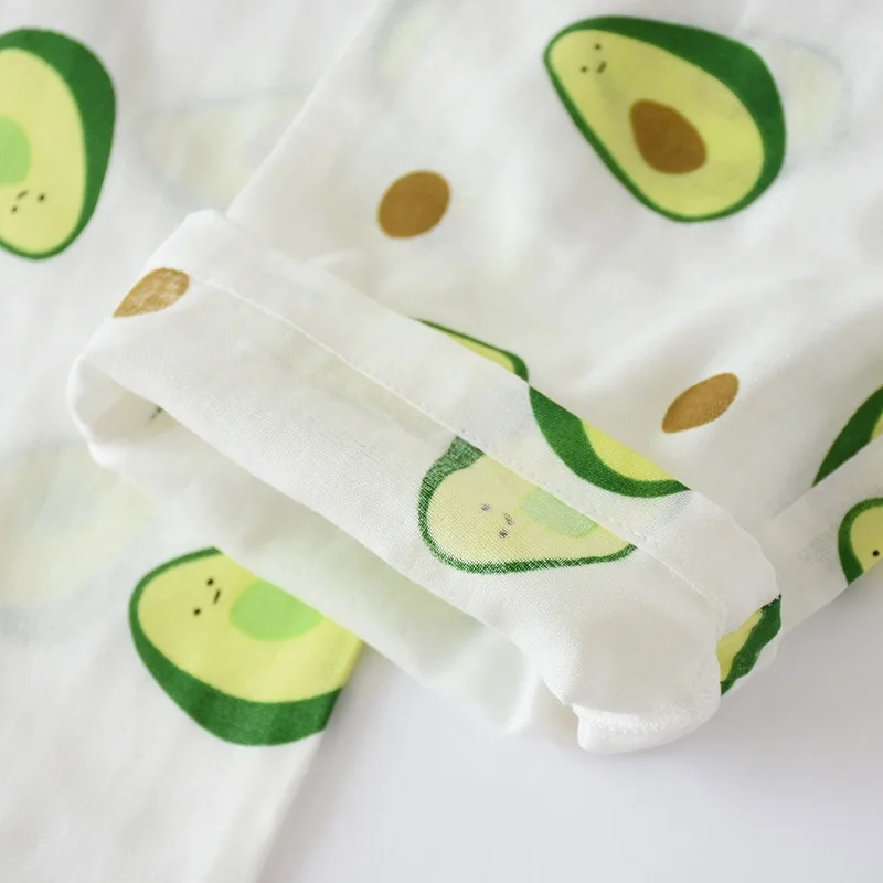 Комплект пижамный женский из рубашки с отложным воротником и штанов, из 2020 хлопка, 100% марли, с принтом авокадо