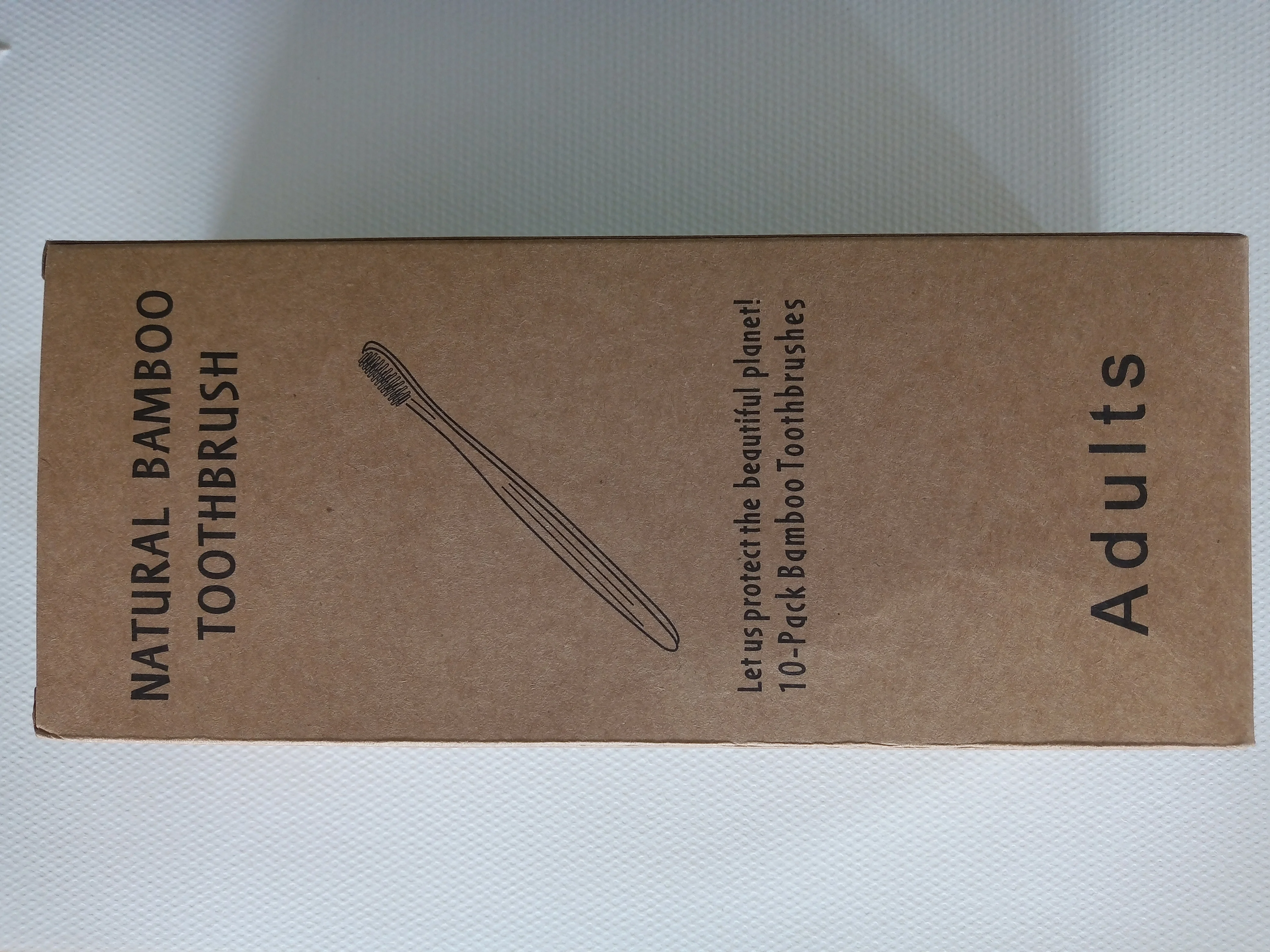 Эти зубные щетки были в упаковке. Каждый имеет собственную коробку, пять с белым нейлоном и пять с черным. Ручки сделаны из бамбука с буквами A,B,C,D и E штампованные на них, почему я не знаю. Я бы оценил жесткость brissell на мягкой/низкой средней. В основном я получил их для своих экстренных комплектов. Не могу побить сделку за десять зубных щеток и их хорошее для окружающей среды.