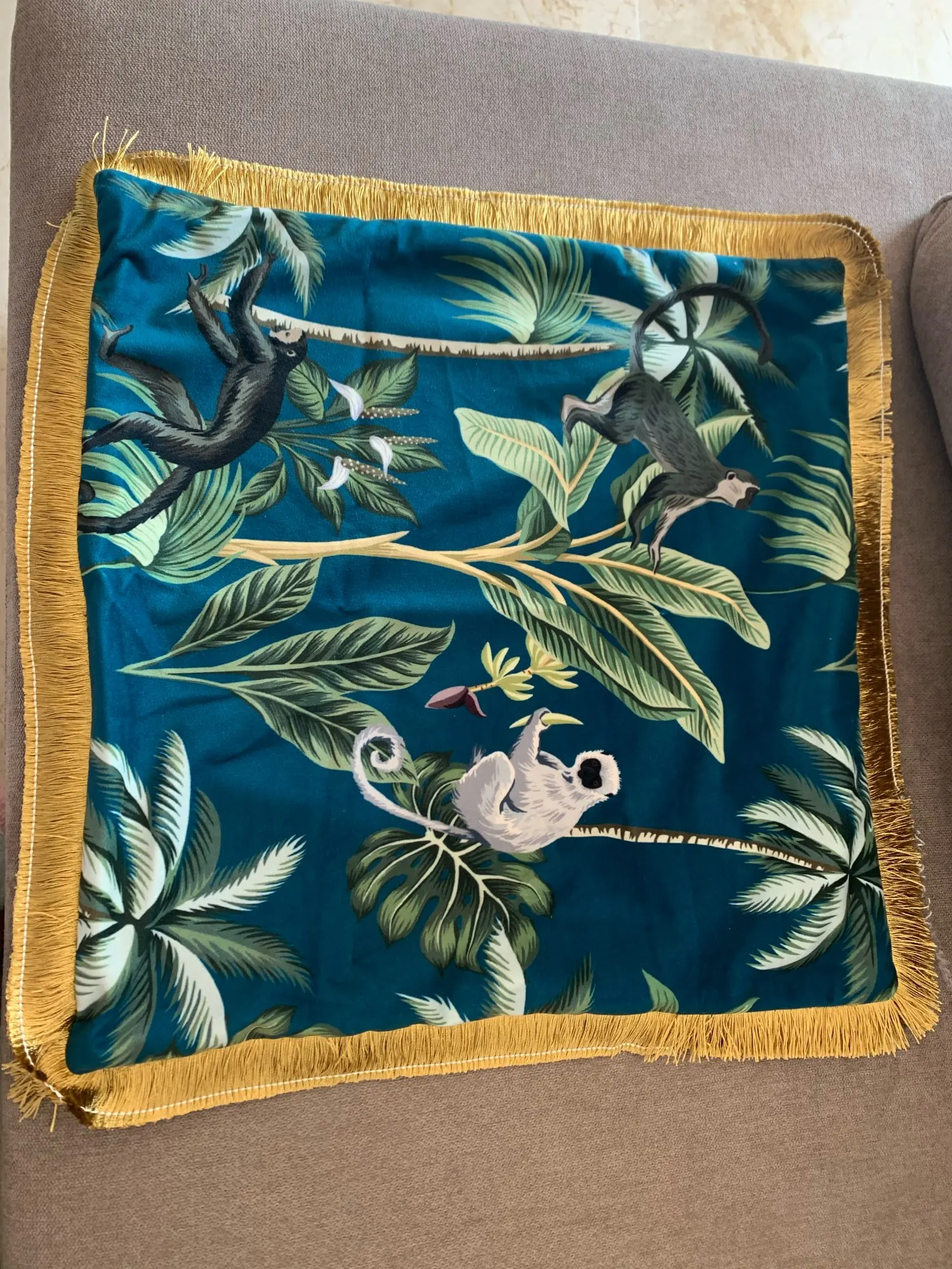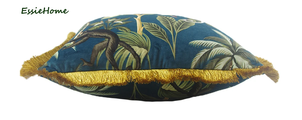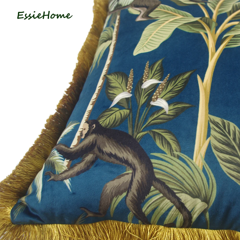 Наволочка на подушку с изображением тропических растений, пальмовых листьев, животных, обезьяны, с цифровым принтом, с золотой кисточкой
