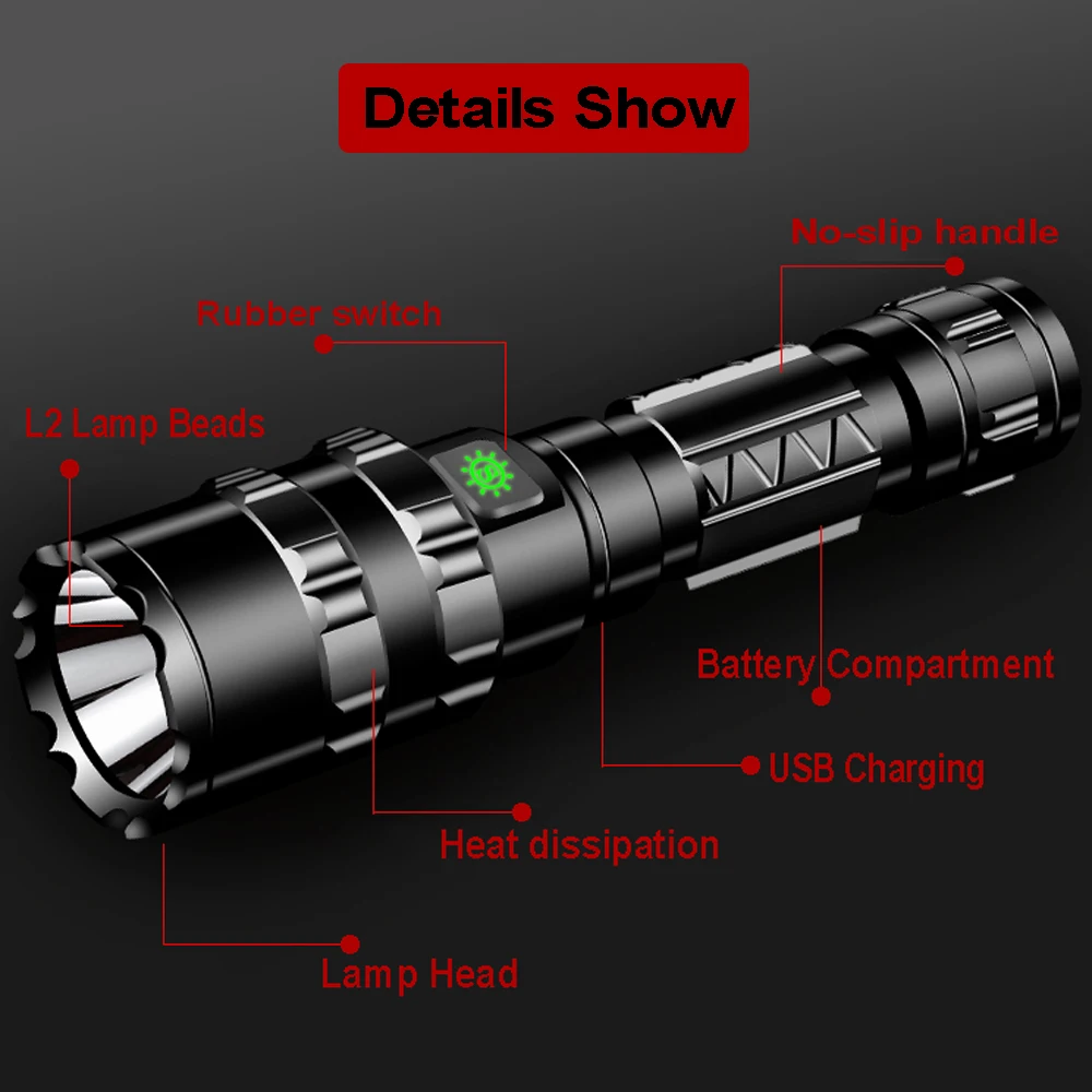 Портативный светодиодный фонасветильник с USB-зарядкой L2, водонепр...