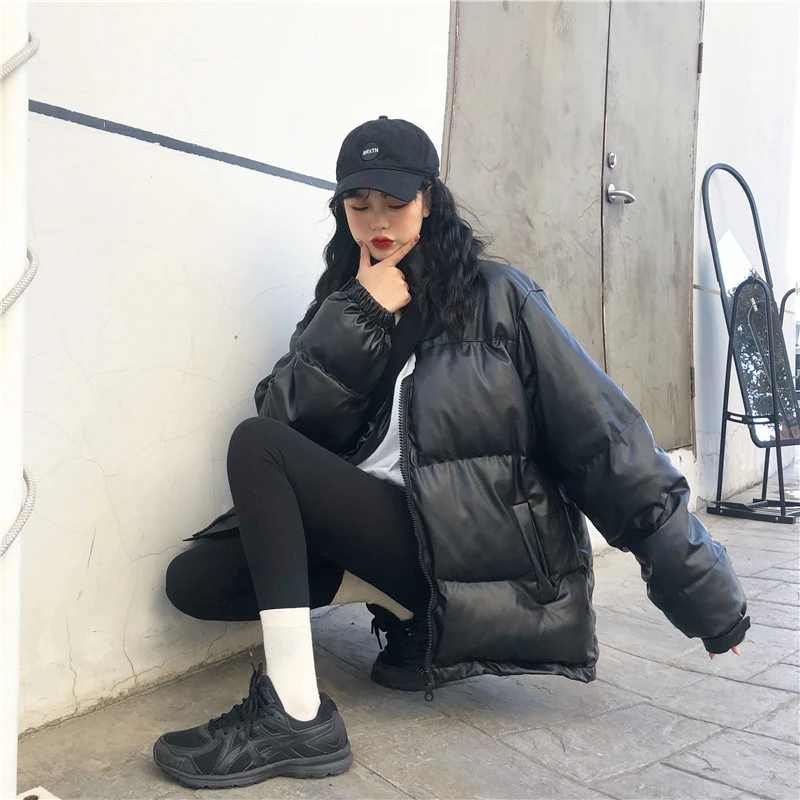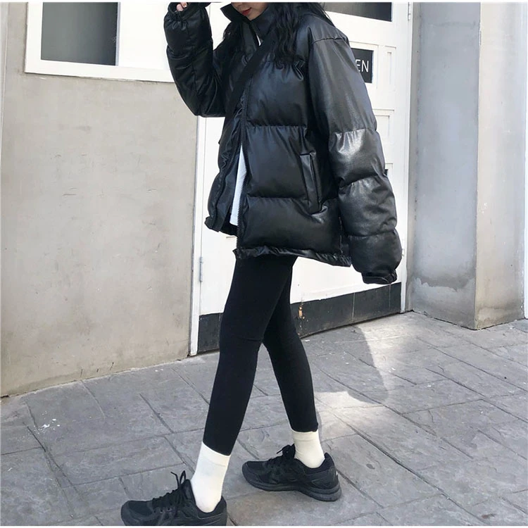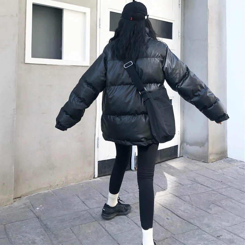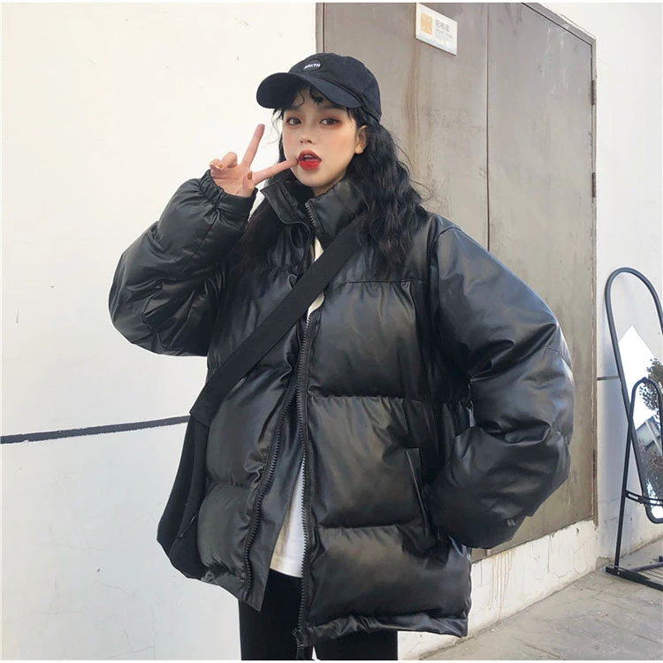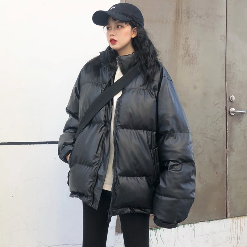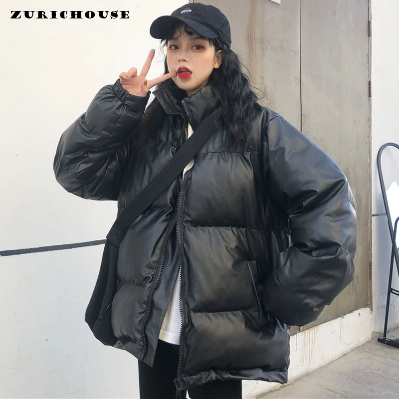 Женская зимняя куртка ZURICHOUSE, Толстая теплая пуховая куртка с воротником-стойкой, 2021, Женская парка в стиле Харадзюку из искусственной кожи