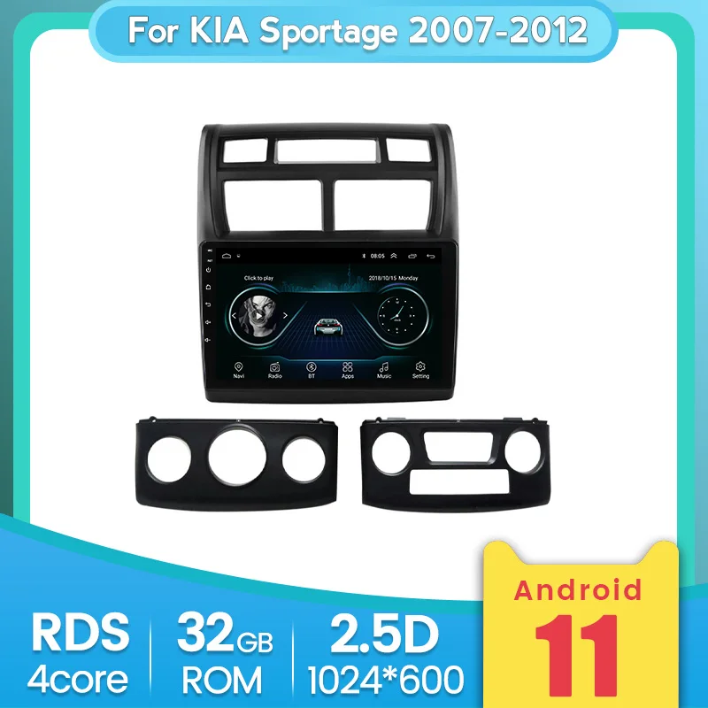 Автомобильный мультимедийный проигрыватель, стерео-система под управлением Android, с 9 "IPS-экраном, 2 Гб ОЗУ, 32 Гб ПЗУ, GPS Навигатором, для Kia Sportage 2, 2007-2013, типоразмер 2 Din