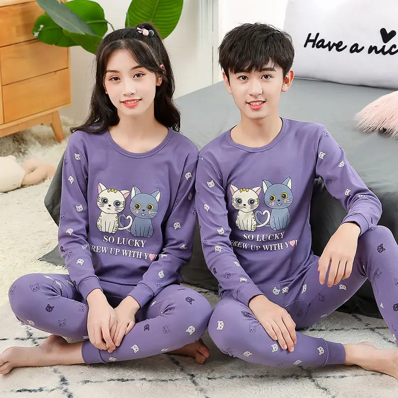 Одежда для сна для мальчиков и девочек, одежда для подростков, осенняя одежда для сна для девочек, хлопковая Детская домашняя одежда, пижамы для детей, пижамы 8 10 12 14 16 лет