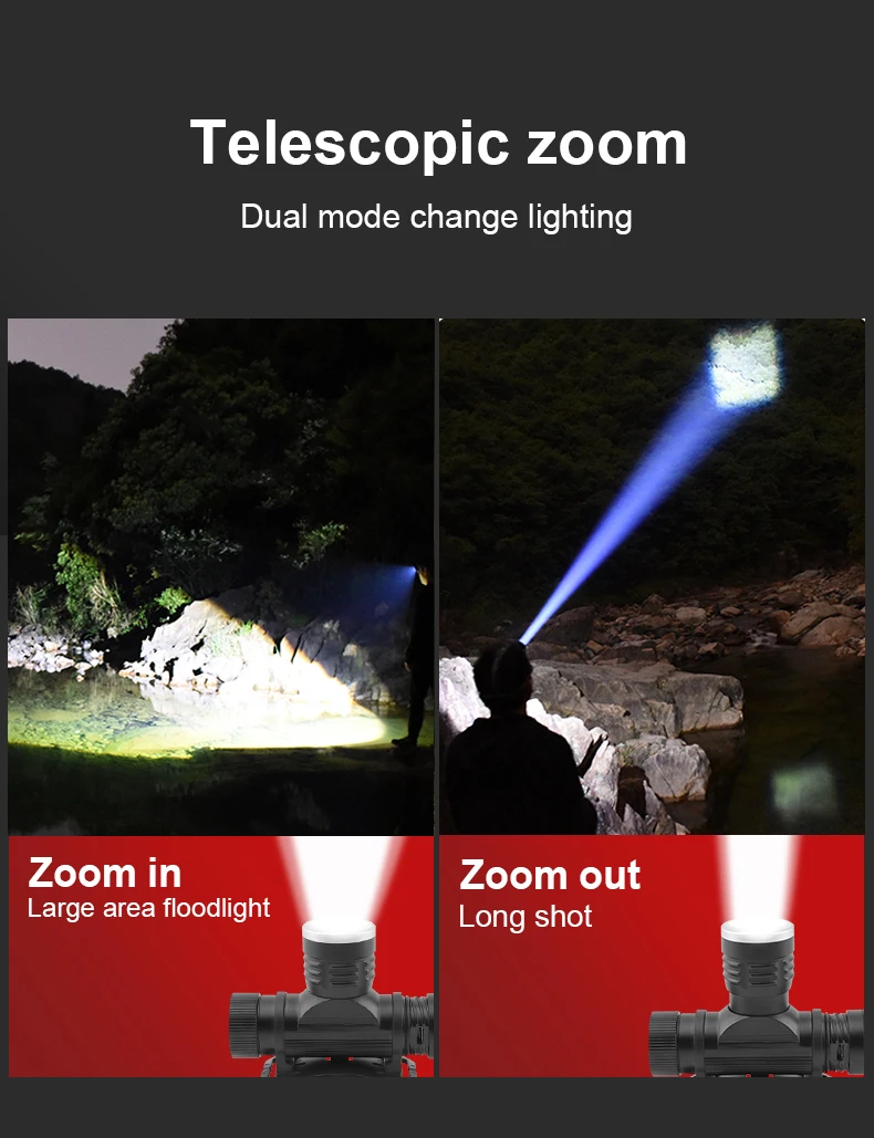 ❥Новейший и самый мощный светодиодный фонарь для рыбалки, кемпинга, фонарь высокой мощности, масштабируемые torchs с USB перезаряжаемой батареей 18650, также поддерживает мобильный телефон для зарядки.