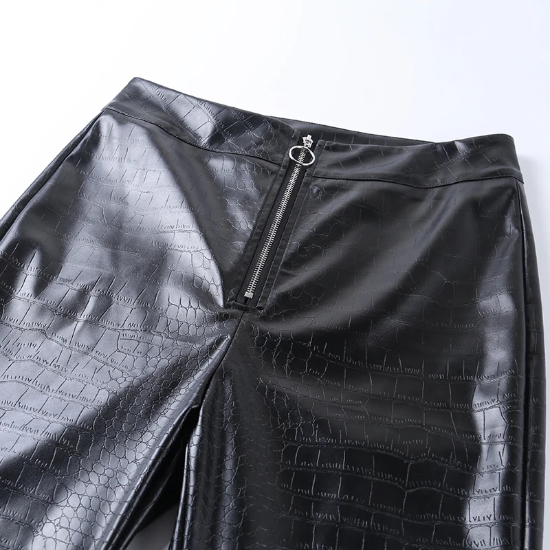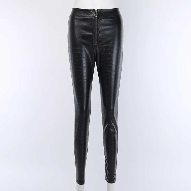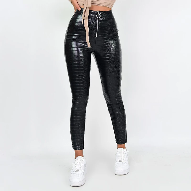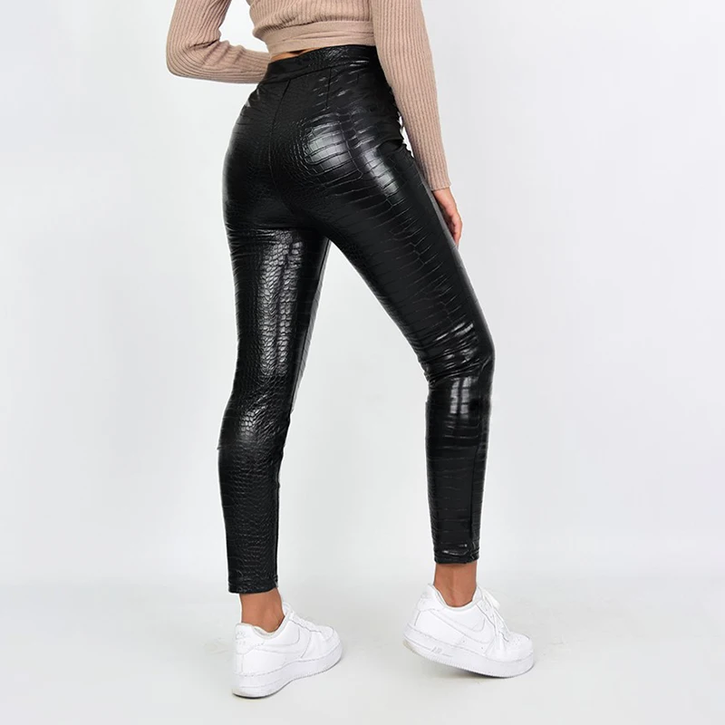 Брюки Allukasa из искусственной кожи с завышенной талией, женские леггинсы, узкие офисные женские брюки, повседневные облегающие черные прямые брюки-карандаш
