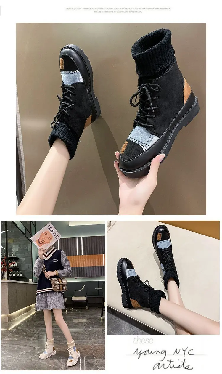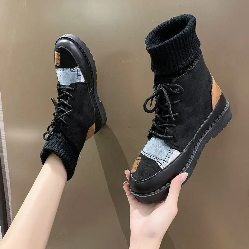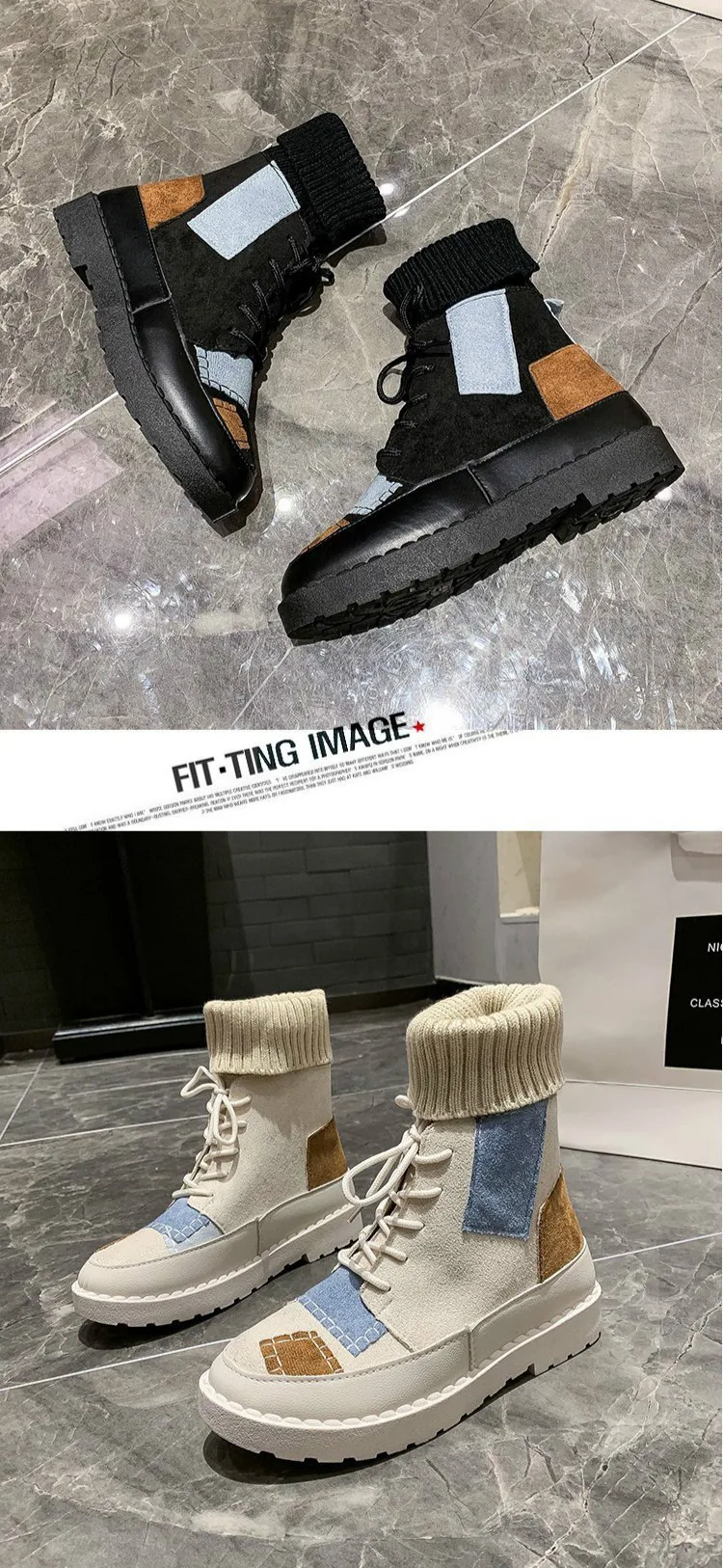 Женские ботильоны; Зимние теплые ботинки из флока с перекрестной шнуровкой на платформе 3 см; Повседневные милые женские ботинки для учащихся