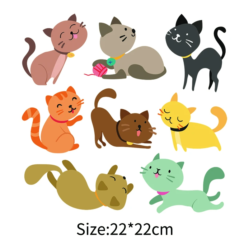 Цветные термонаклейки в виде кошек для одежды, моющиеся нашивки сде...