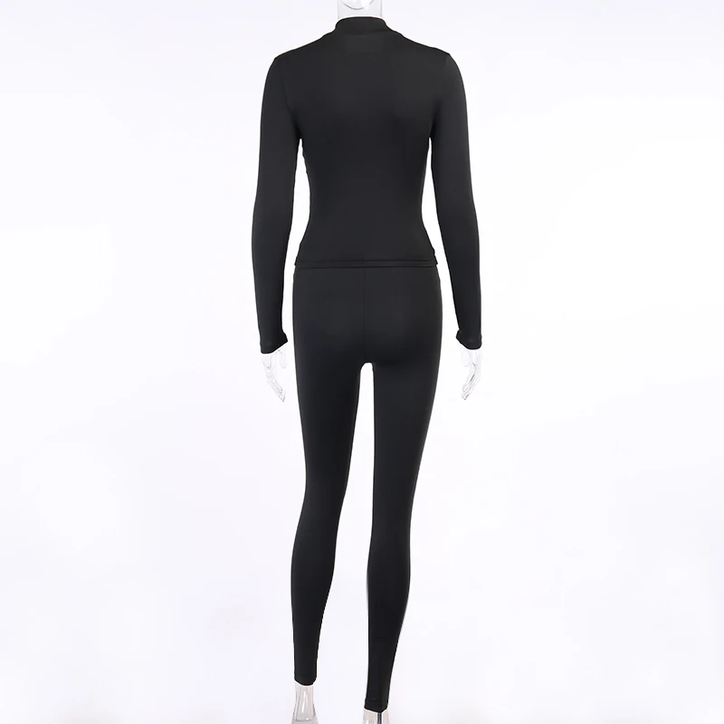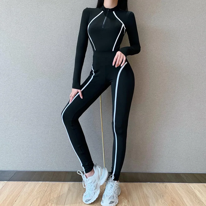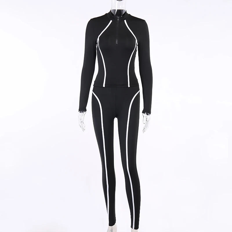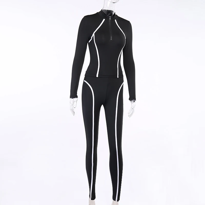 WannaThis Женский комплект из 2 предметов, топ с длинными рукавами и леггинсы, комплект в полоску, обтягивающие черные уличные Осенние новые эластичные повседневные два комплекта