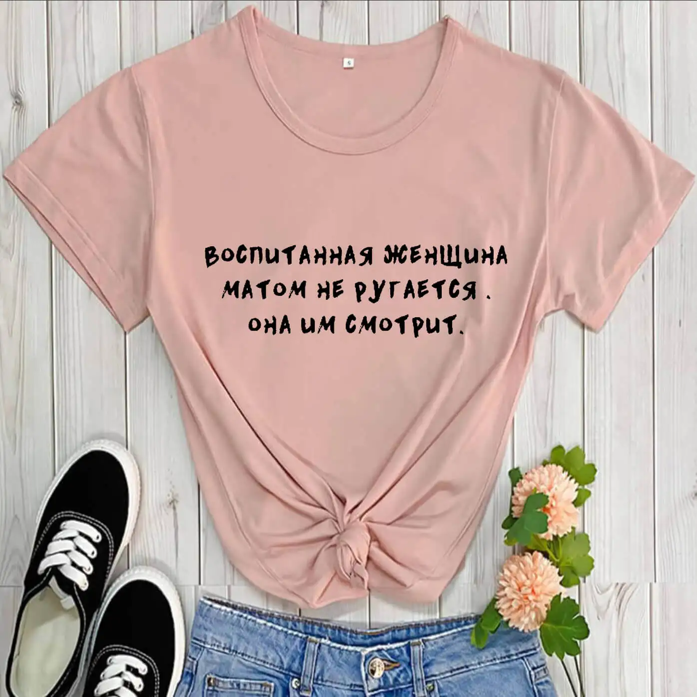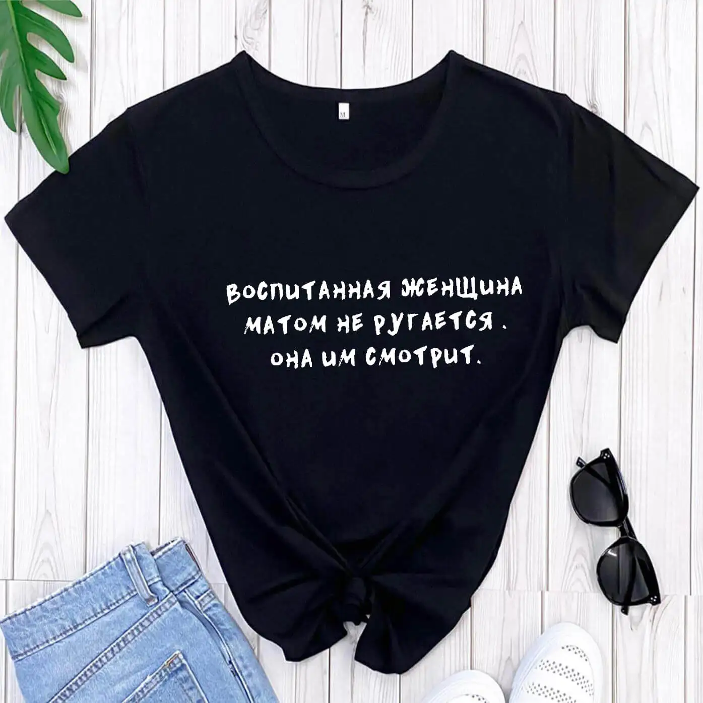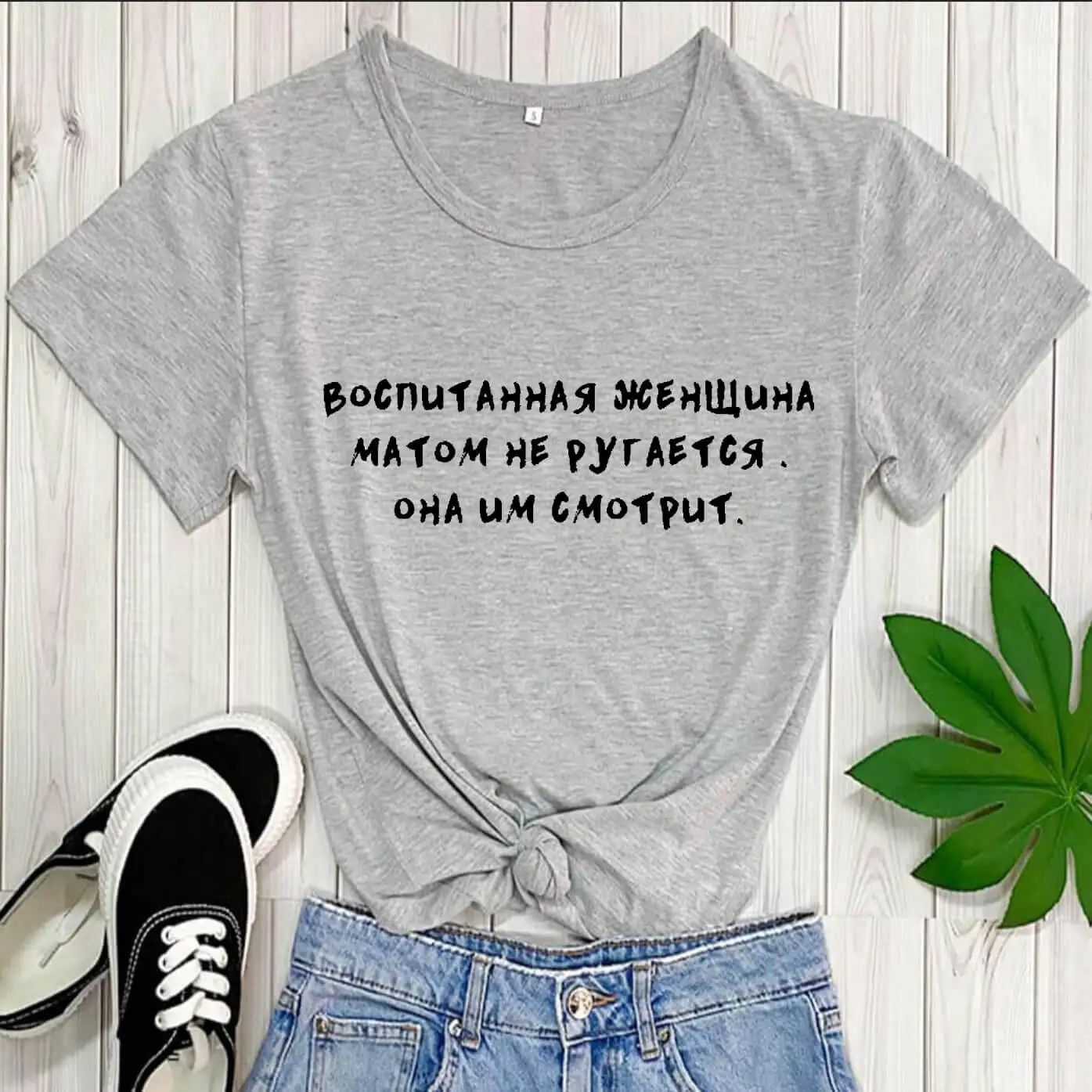 воспитанная женщина русских букв Новое поступление Повседневная забавная футболка из 100% хлопка модные женские топы Прямая поставка
