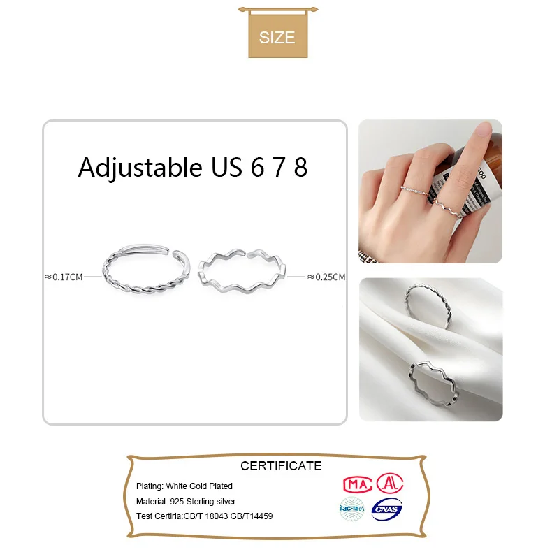 Кольцо женское из серебра 925 пробы, с волнами, DA1796