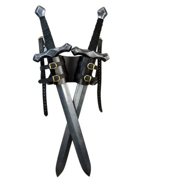 Средневековый рыцарь Сзади Двойной ножны плечевой ремень держатель меч ножны, скаббард лягушка для взрослых кожаный комплект снаряжение костюм с оружием опора