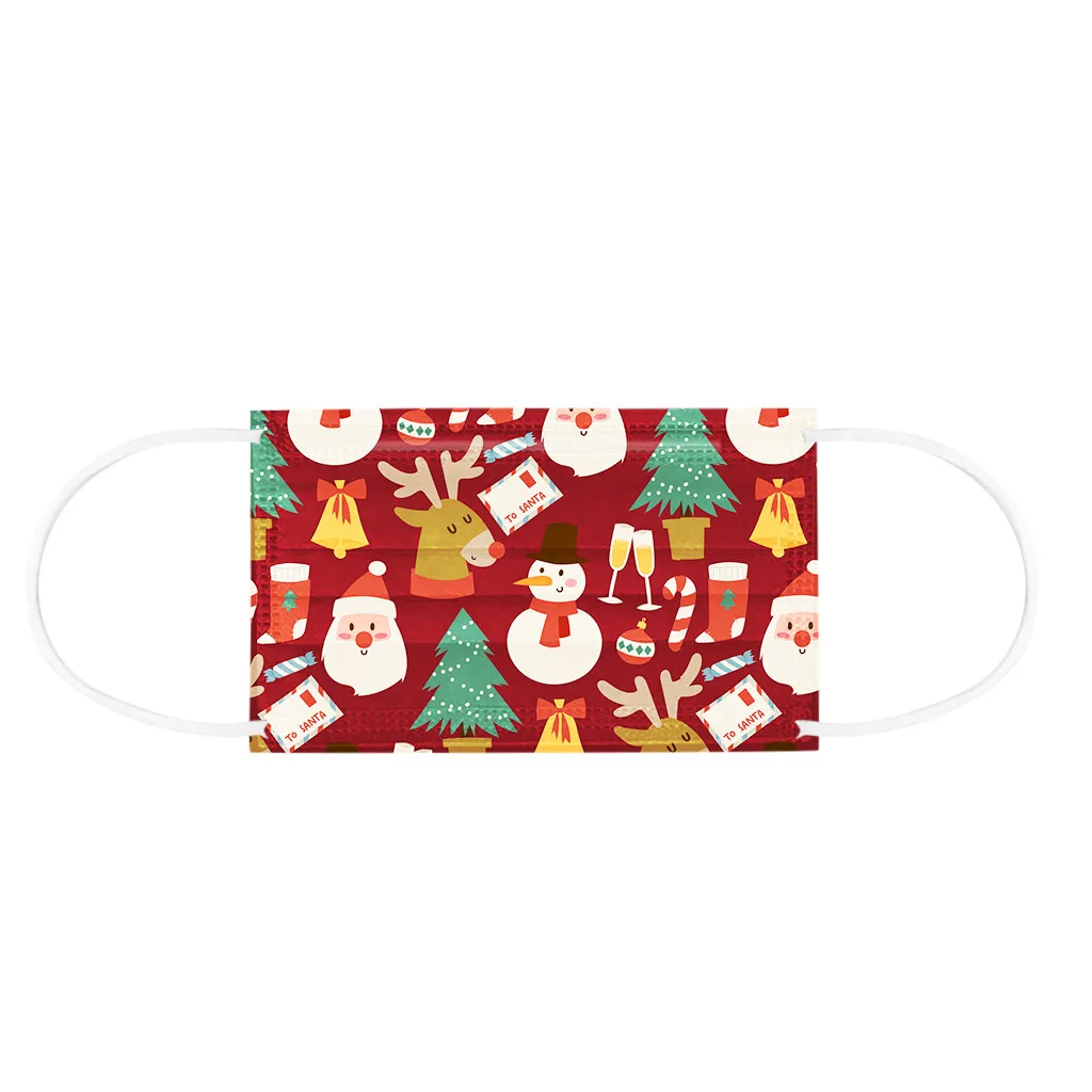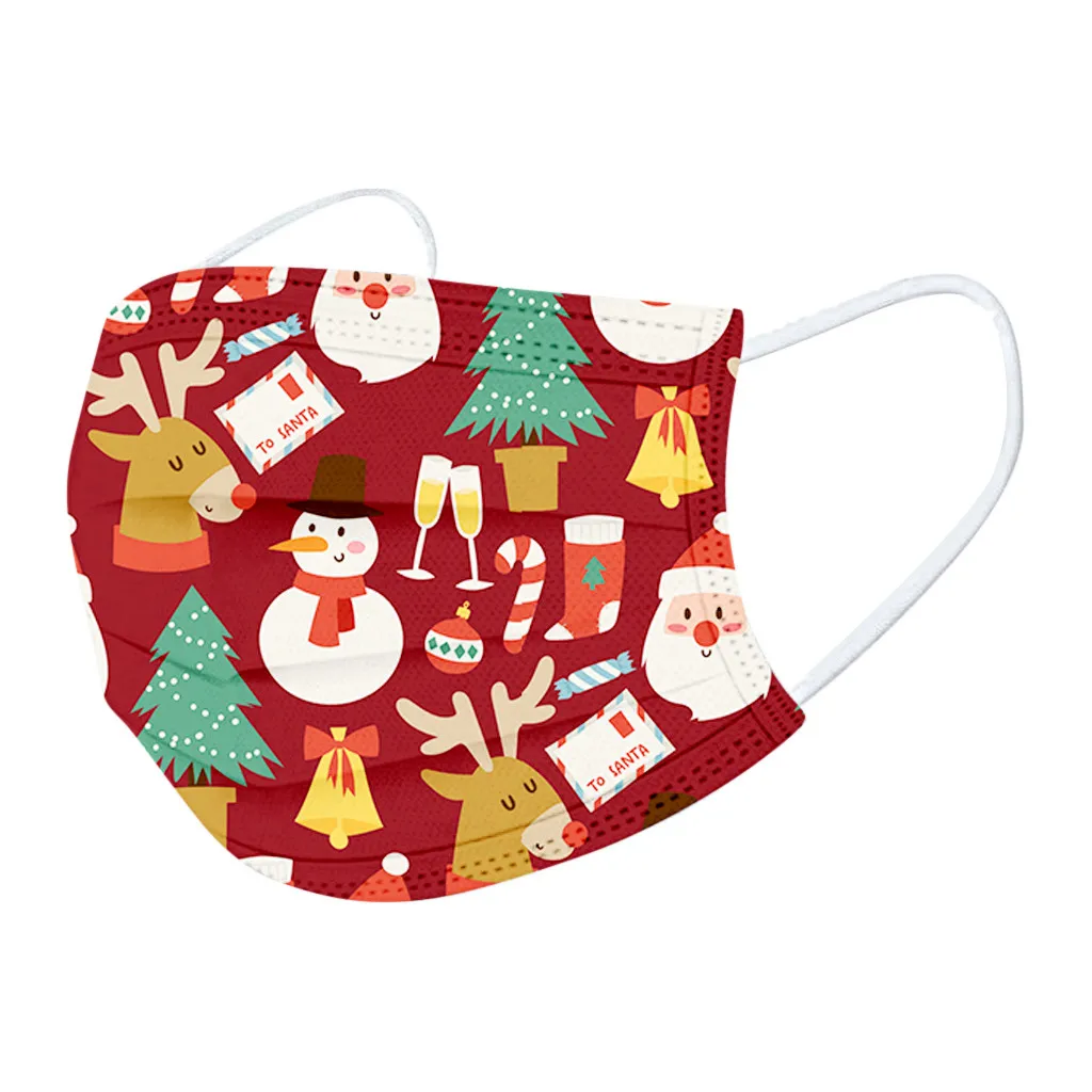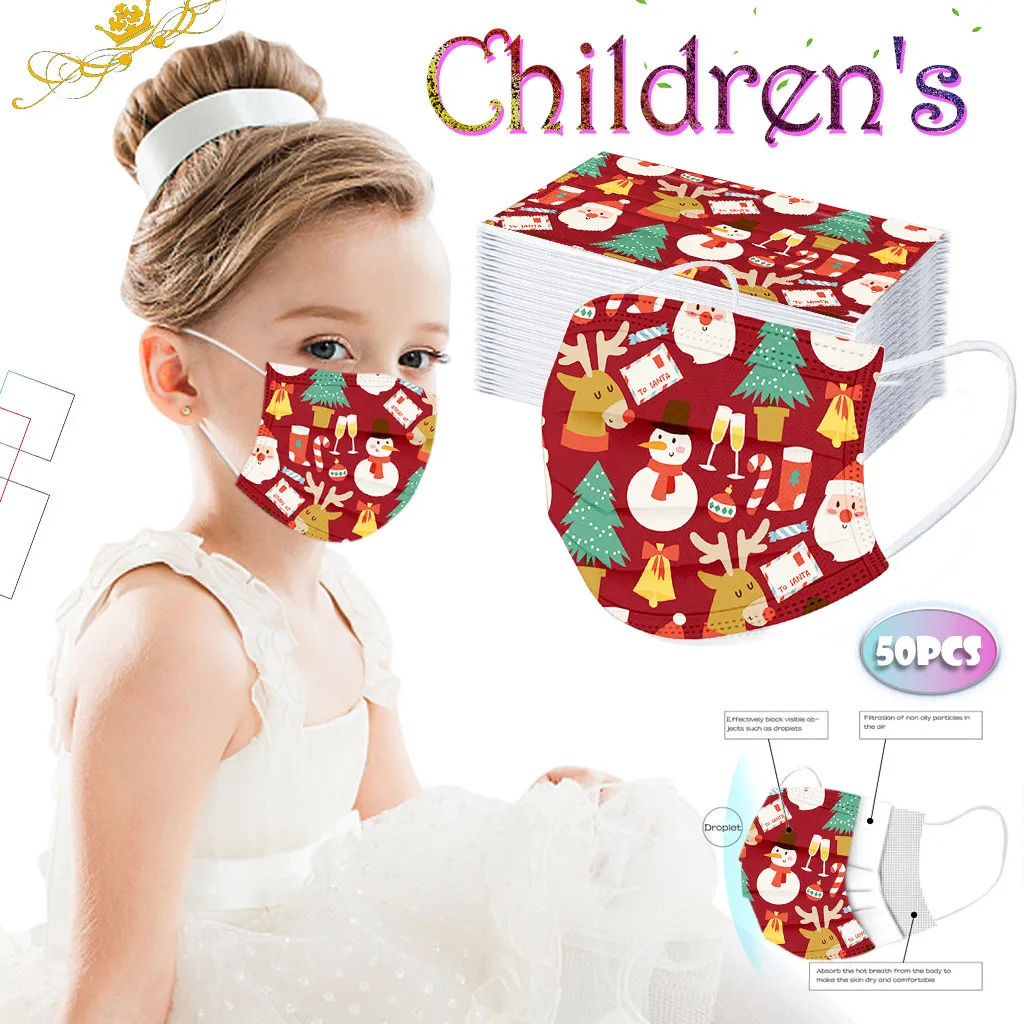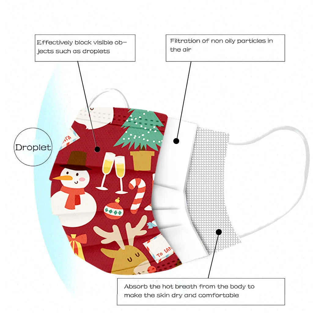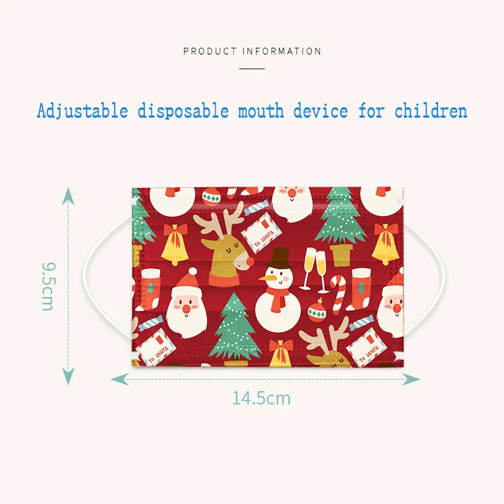 50 шт. с рождественским принтом для детей маска одноразовая маска для лица промышленный 3Ply петли уха с изображениями Санта-Клауса и снеговика Рождественская противопылевая маска Бесплатная доставка