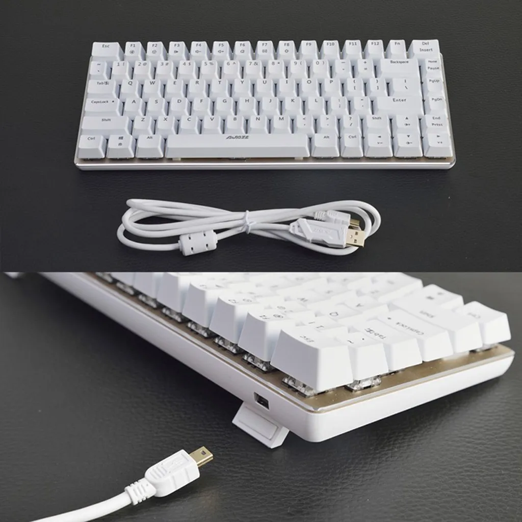 AK33 Usb Проводная игровая механическая клавиатура с подсветкой, синие и черные переключатели для офиса, машинок и игр (синий переключатель, белый)