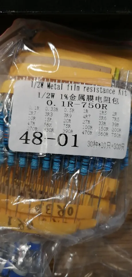30 значений * 10 шт. = 300 шт. 1/2W 1% металлического пленочного резистора