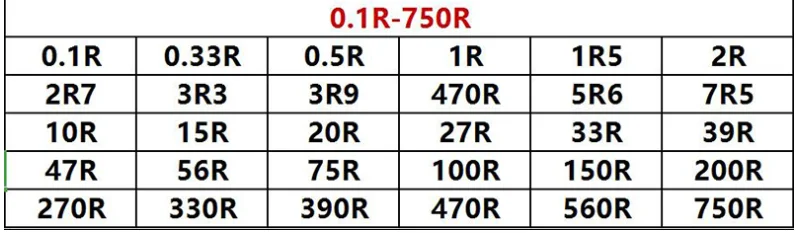 Набор резисторов SMD 1R00 R820 R750 R620 R500 R470 R330 R220 R150 R...