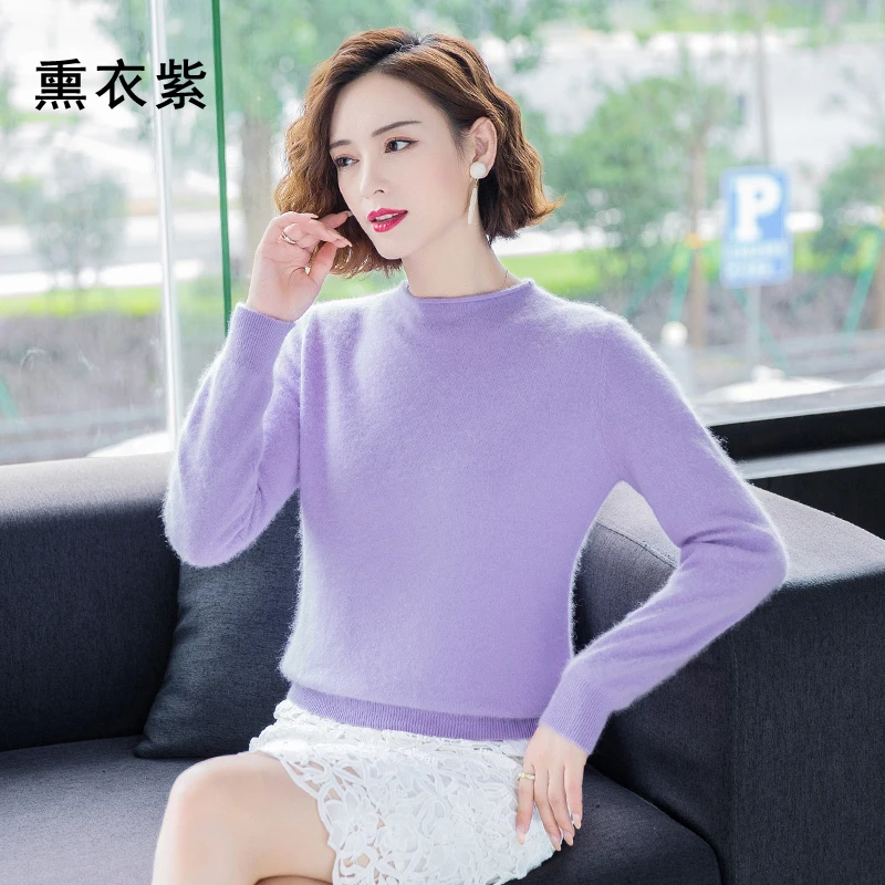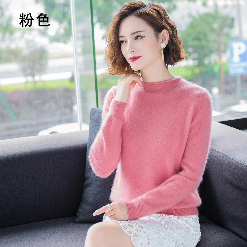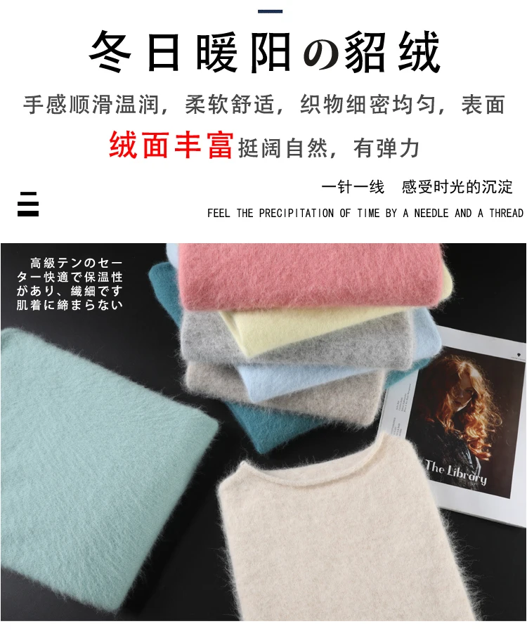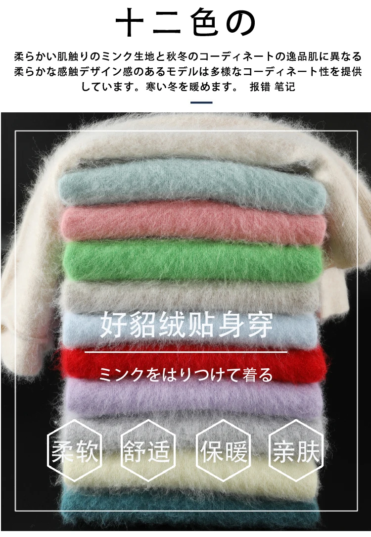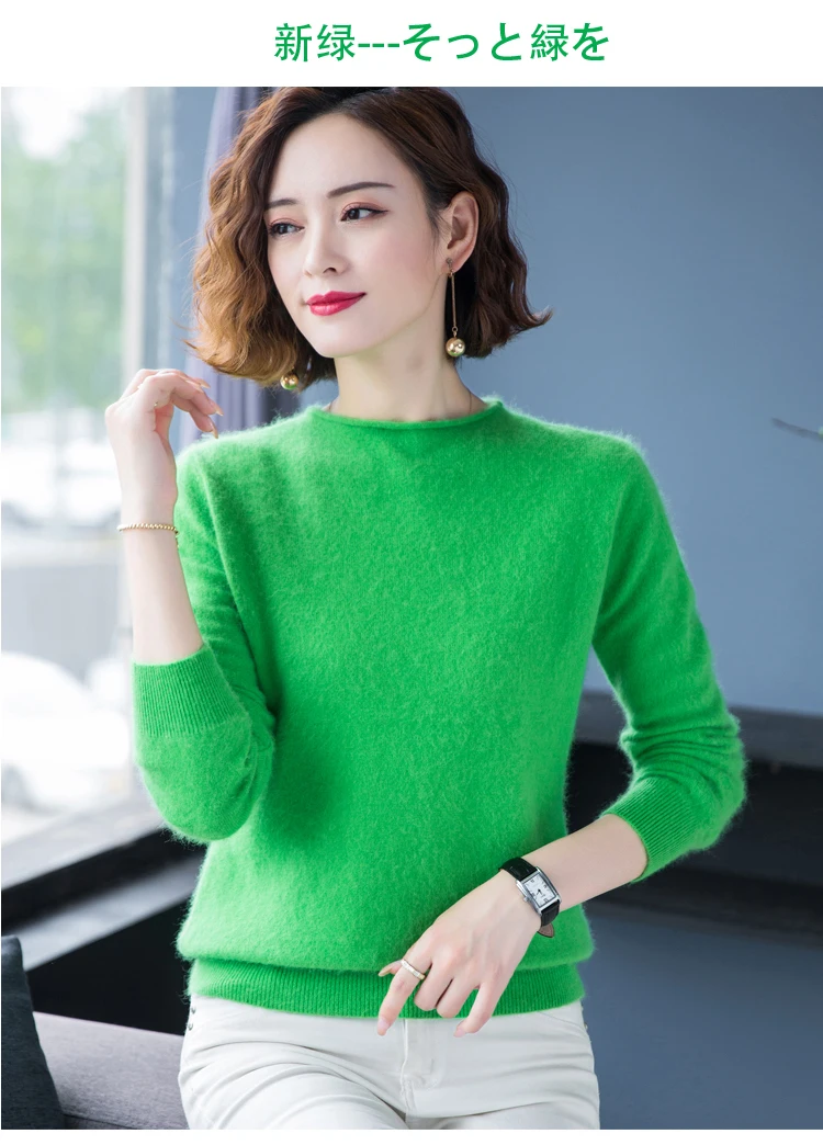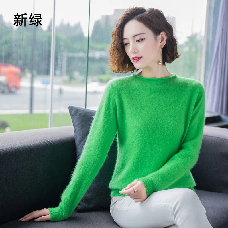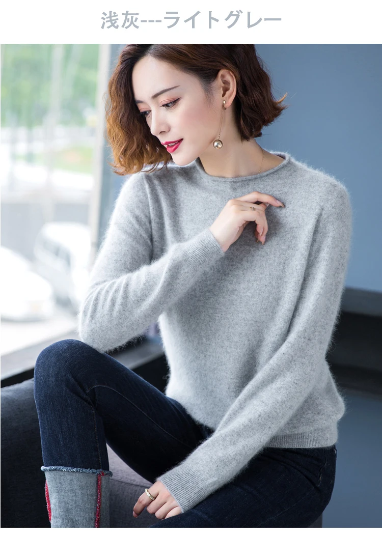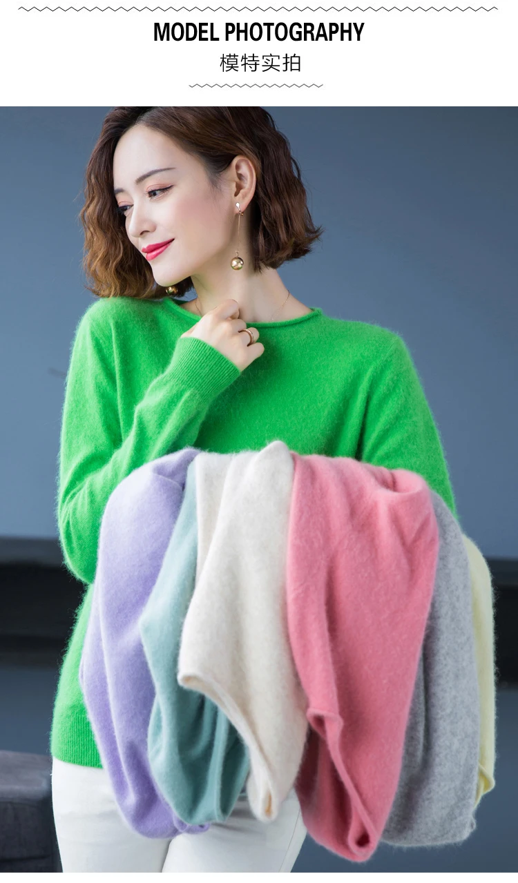 Женский свитер, 100% норковый кашемировый свитер, Женский вязаный свитер с круглым вырезом и пуловеры, однотонные топы с длинными рукавами, очень теплый свитер