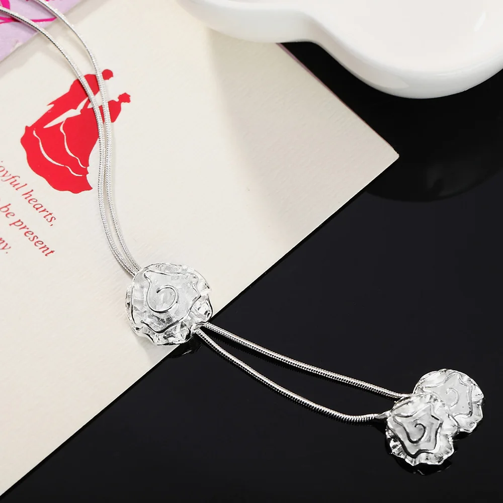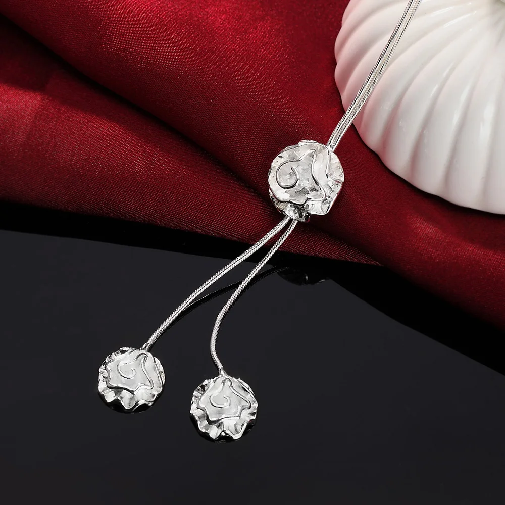 Женская цепочка из серебра 925 пробы, с цветком розы