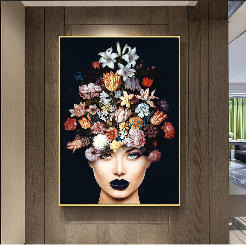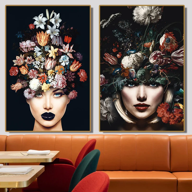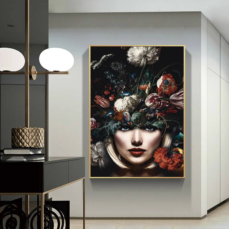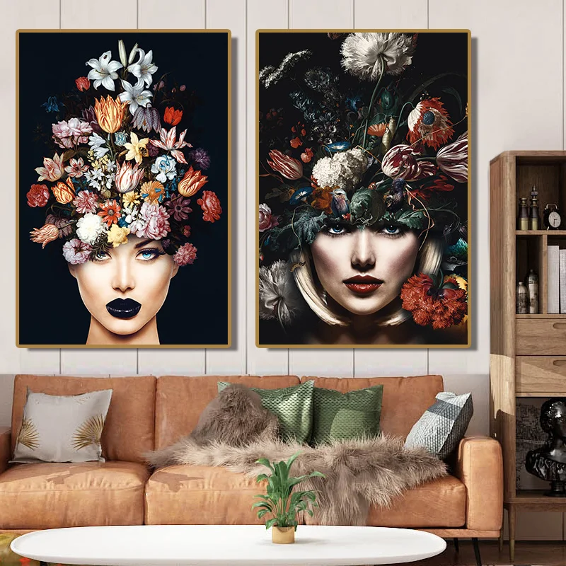 Скандинавский холст живопись для гостиной HD женщина с цветами на голове плакат tableau художественные современные декоративные картины Настенные художественные картины для украшения комнаты в скандинавском стиле