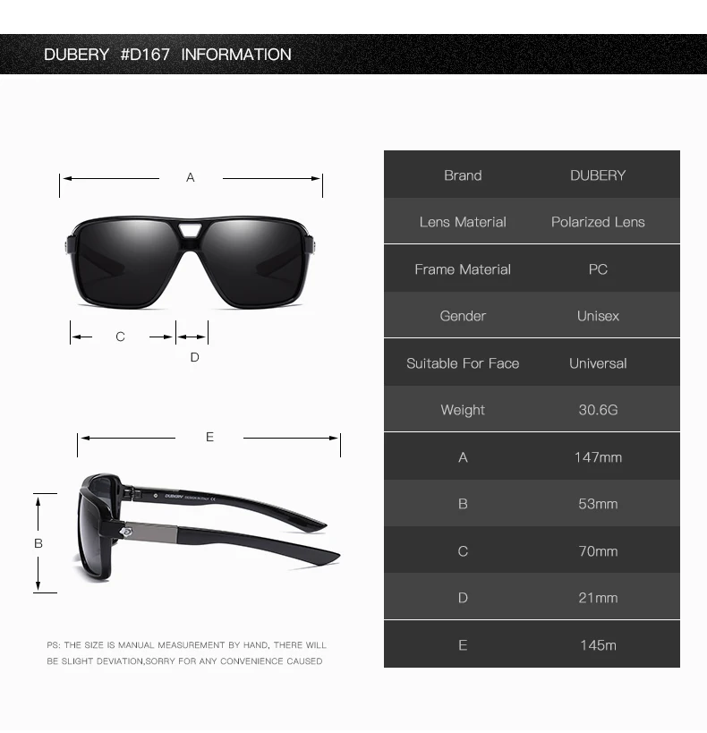 Солнцезащитные очки DUBERY мужские, винтажные поляризационные темные очки UV400, для вождения, черные, 8 цветов, модель 167