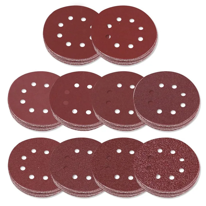 10 шт., круглые наждачные бумаги, 5 дюймов, 125 мм, 8 отверстий, Зернистость 40-2000