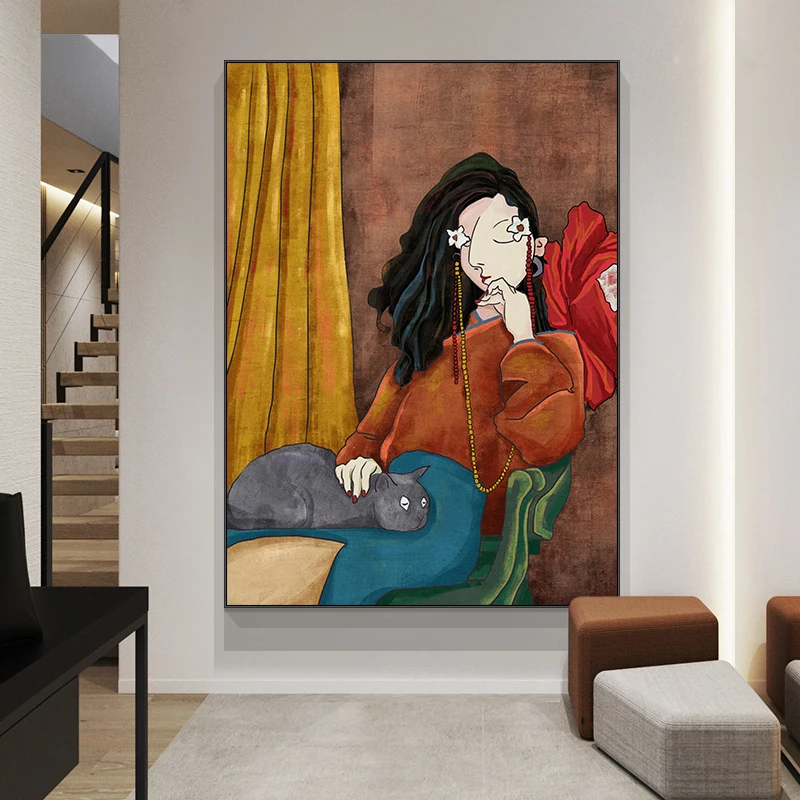 Женская Картина на холсте, настенные художественные Плакаты для гос...
