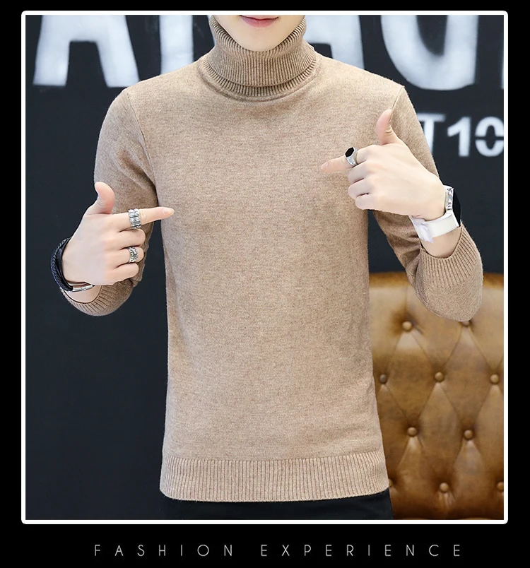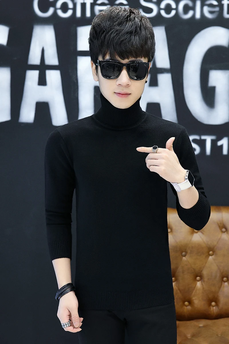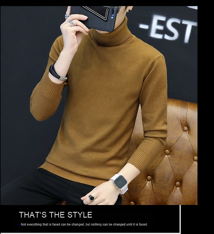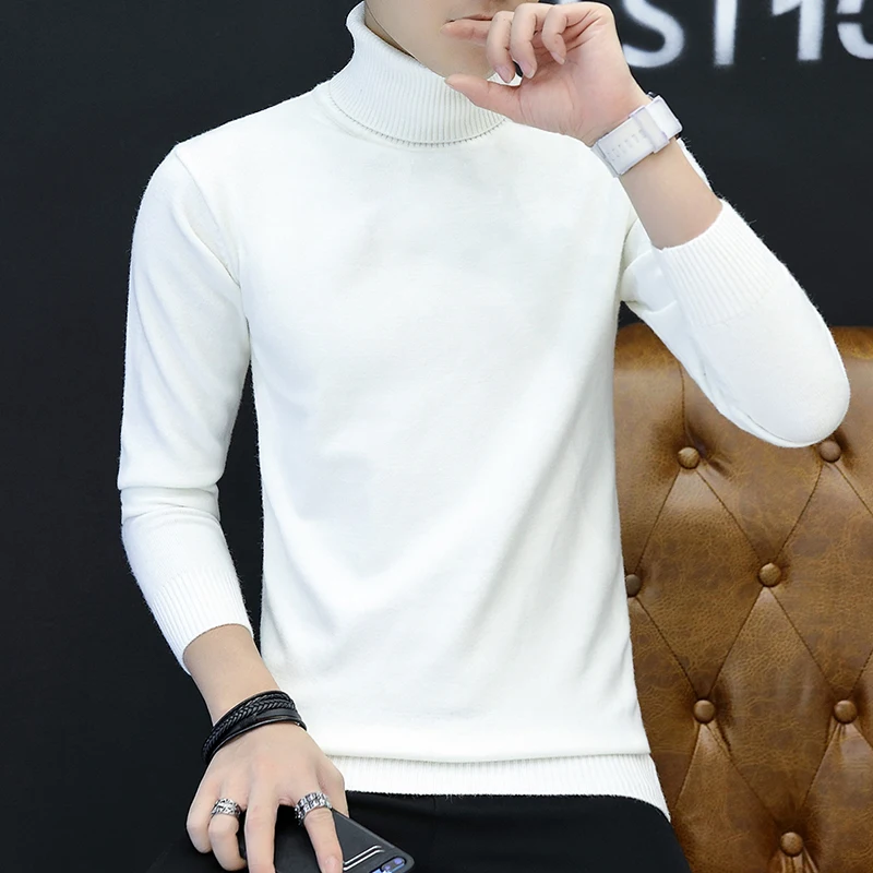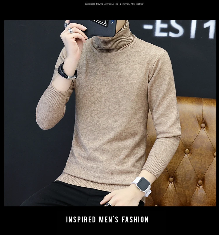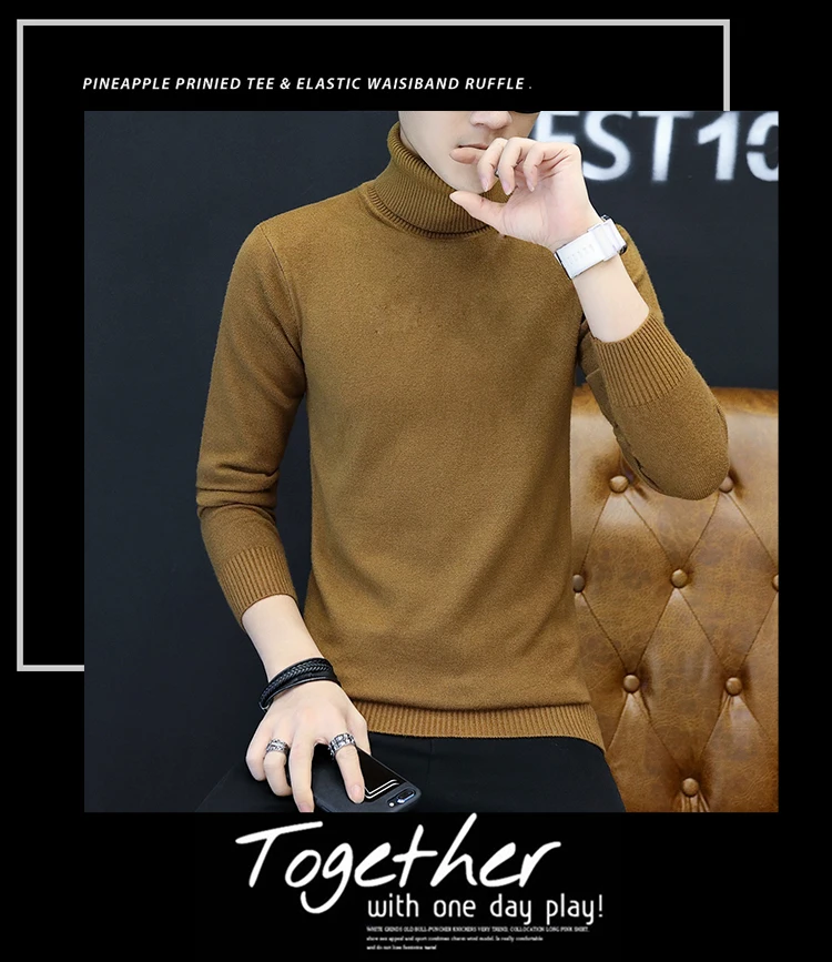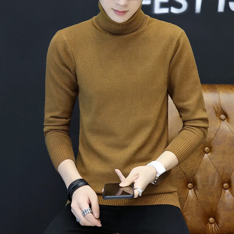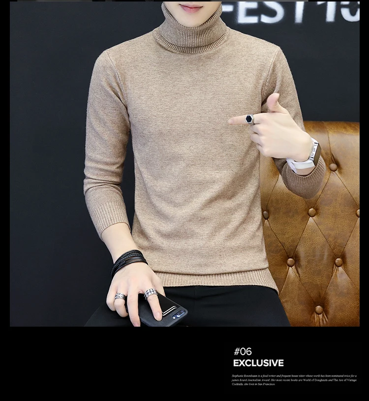 Мужской трикотажный свитер с длинным рукавом и высоким воротом