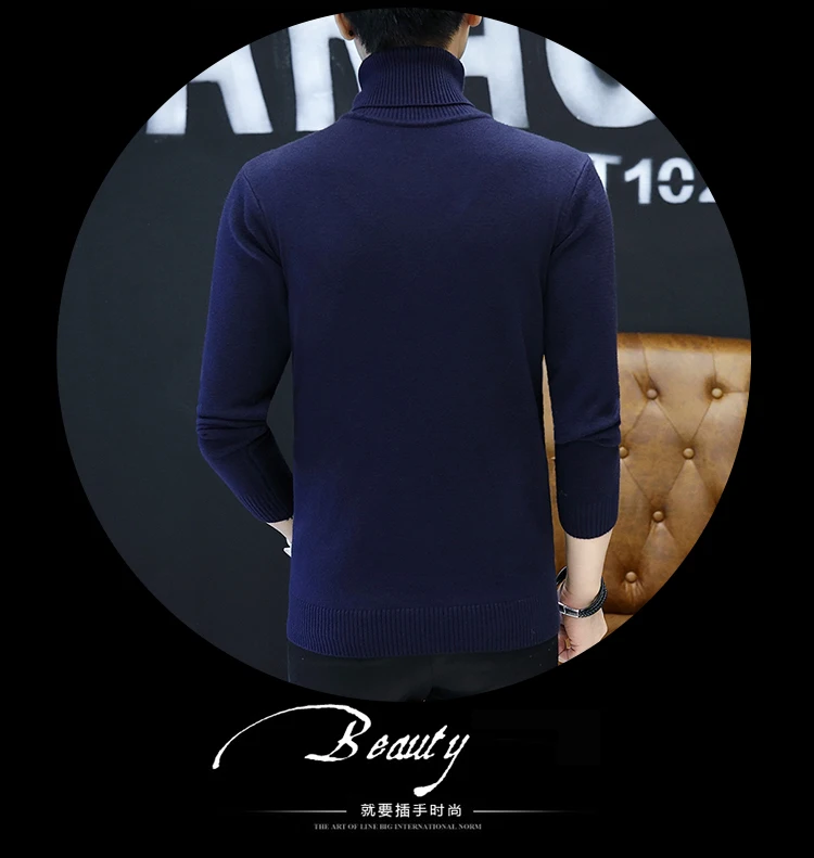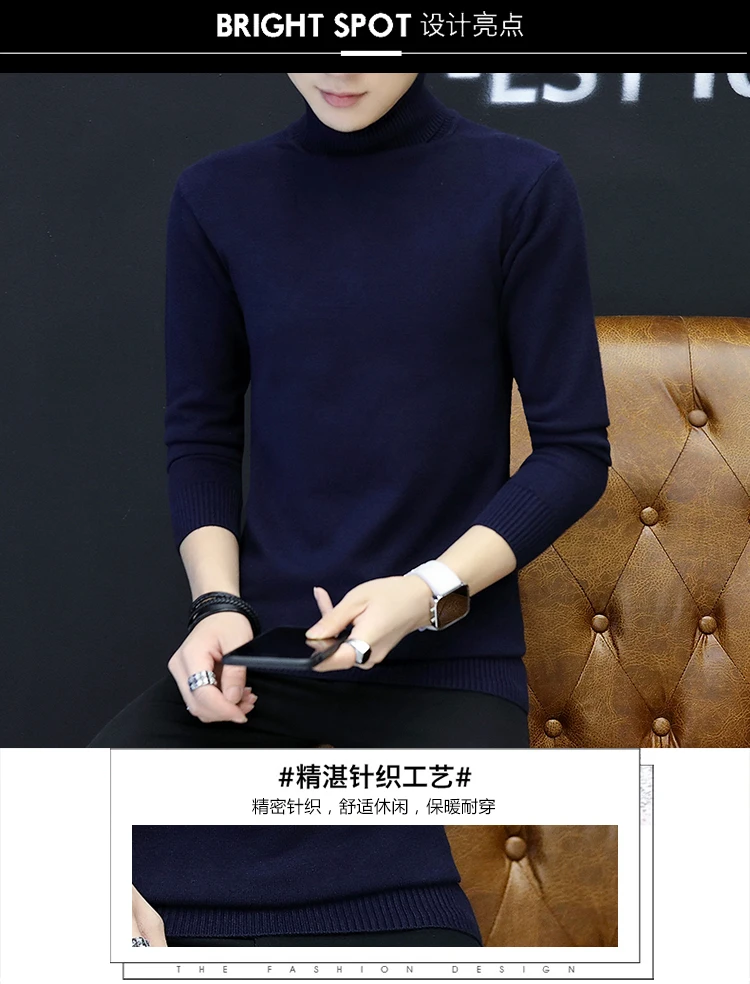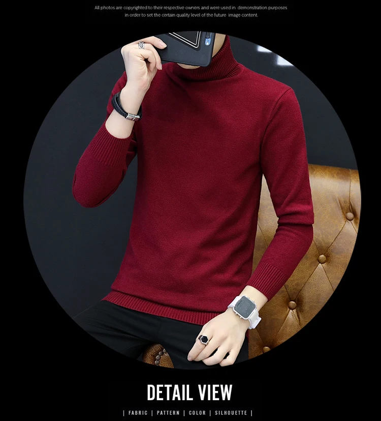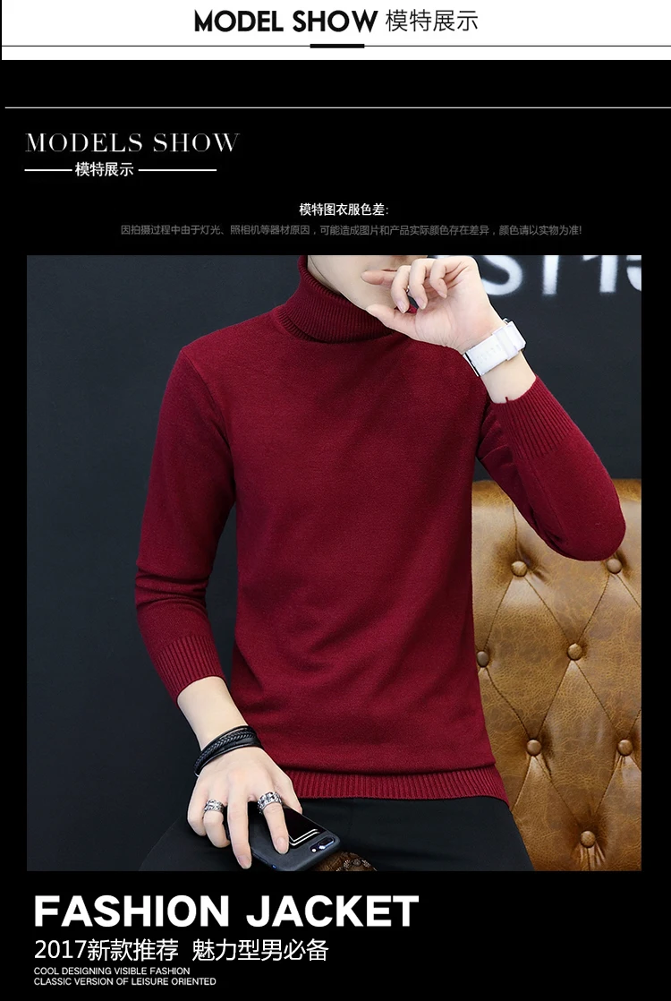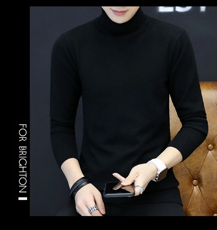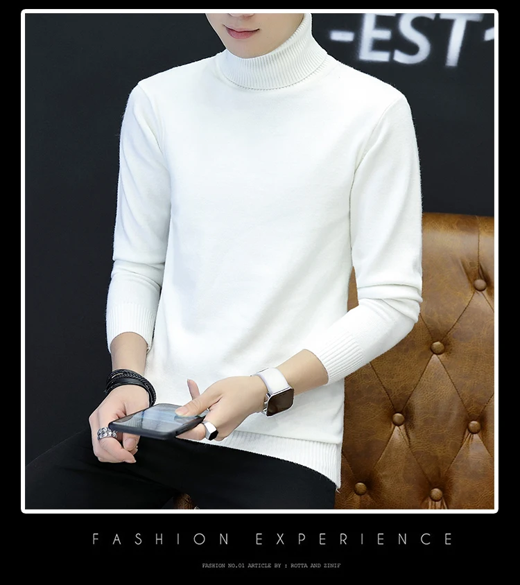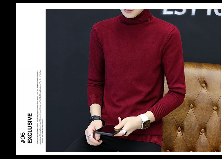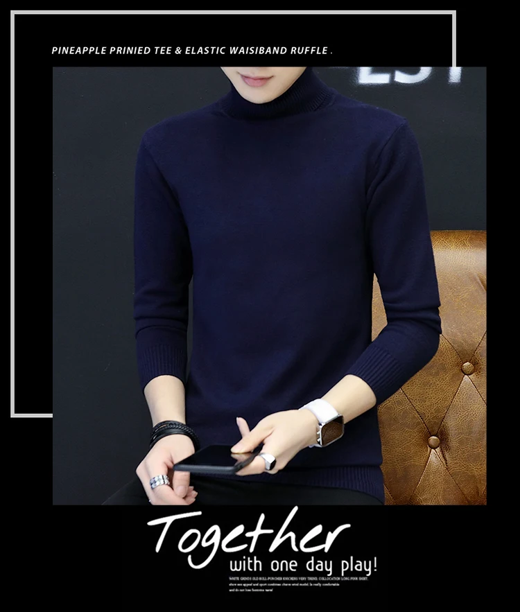 Мужской трикотажный свитер с длинным рукавом и высоким воротом