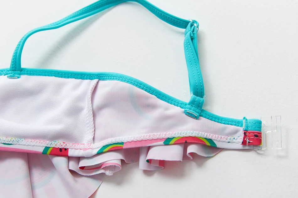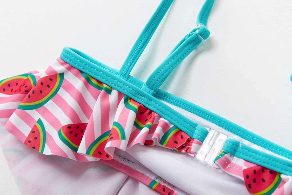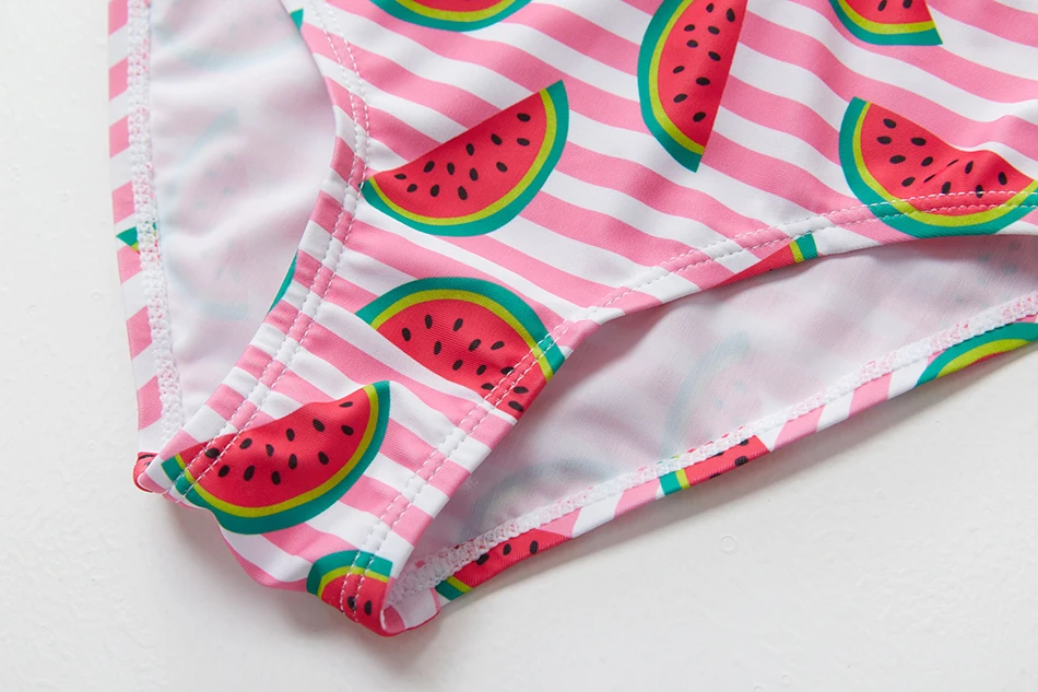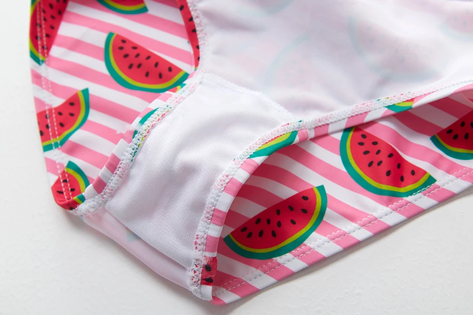 2020 Купальник для девочек полосатый купальник с фруктами от 3 до 10 лет детский купальник из двух предметов с рюшами, стильный купальный костюм для девочек 9057