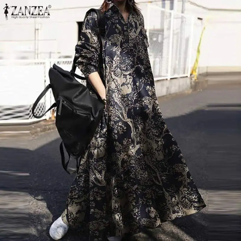 Осенний сарафан ZANZEA, элегантное женское длинное платье-рубашка с...