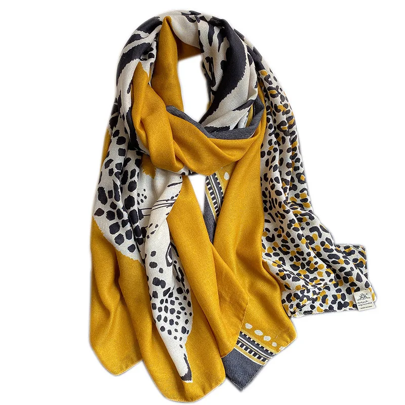 Женский зимний хлопковый хиджаб с леопардовым принтом