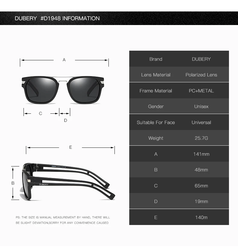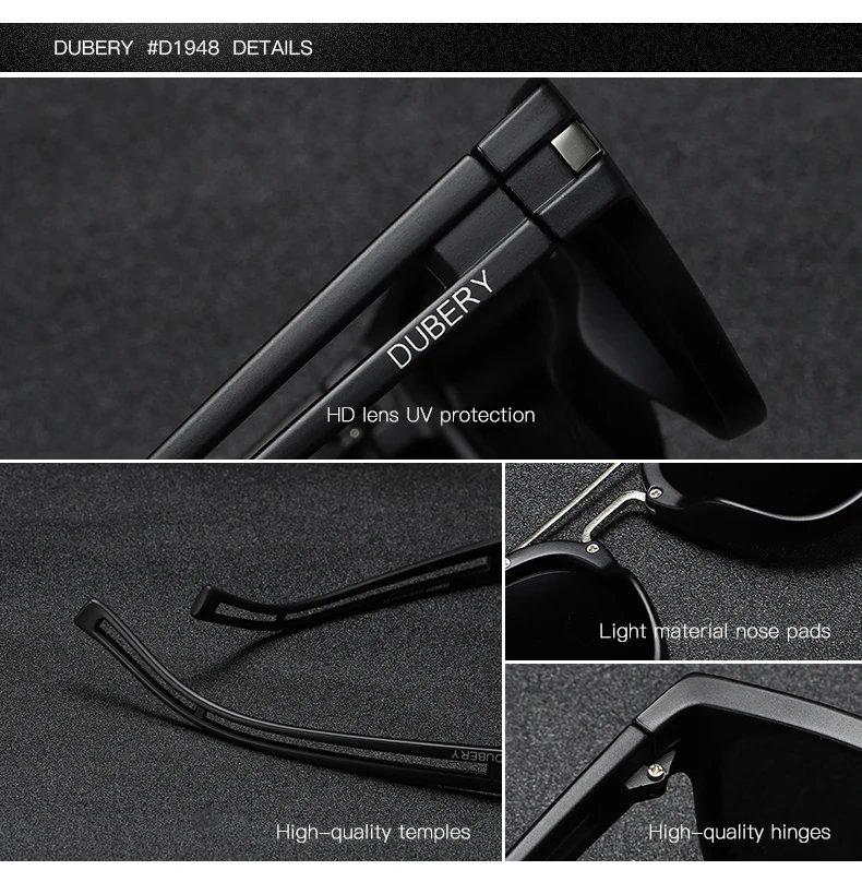Солнцезащитные очки DUBERY мужские, винтажные поляризационные темные очки для вождения, в квадратной оправе, черные ретро, 9 цветов, модель 1948