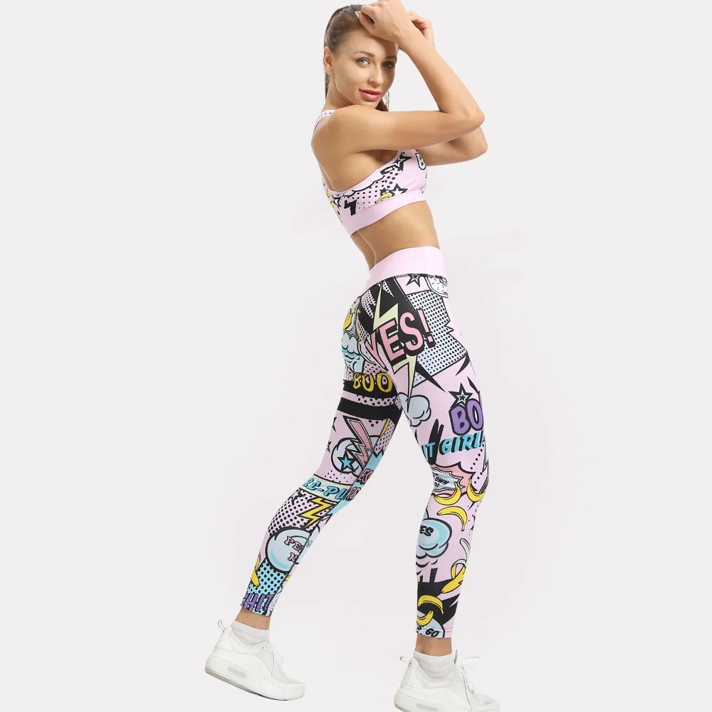 Женский спортивный костюм для бега, йоги, леггинсы с высокой талией и принтом банана