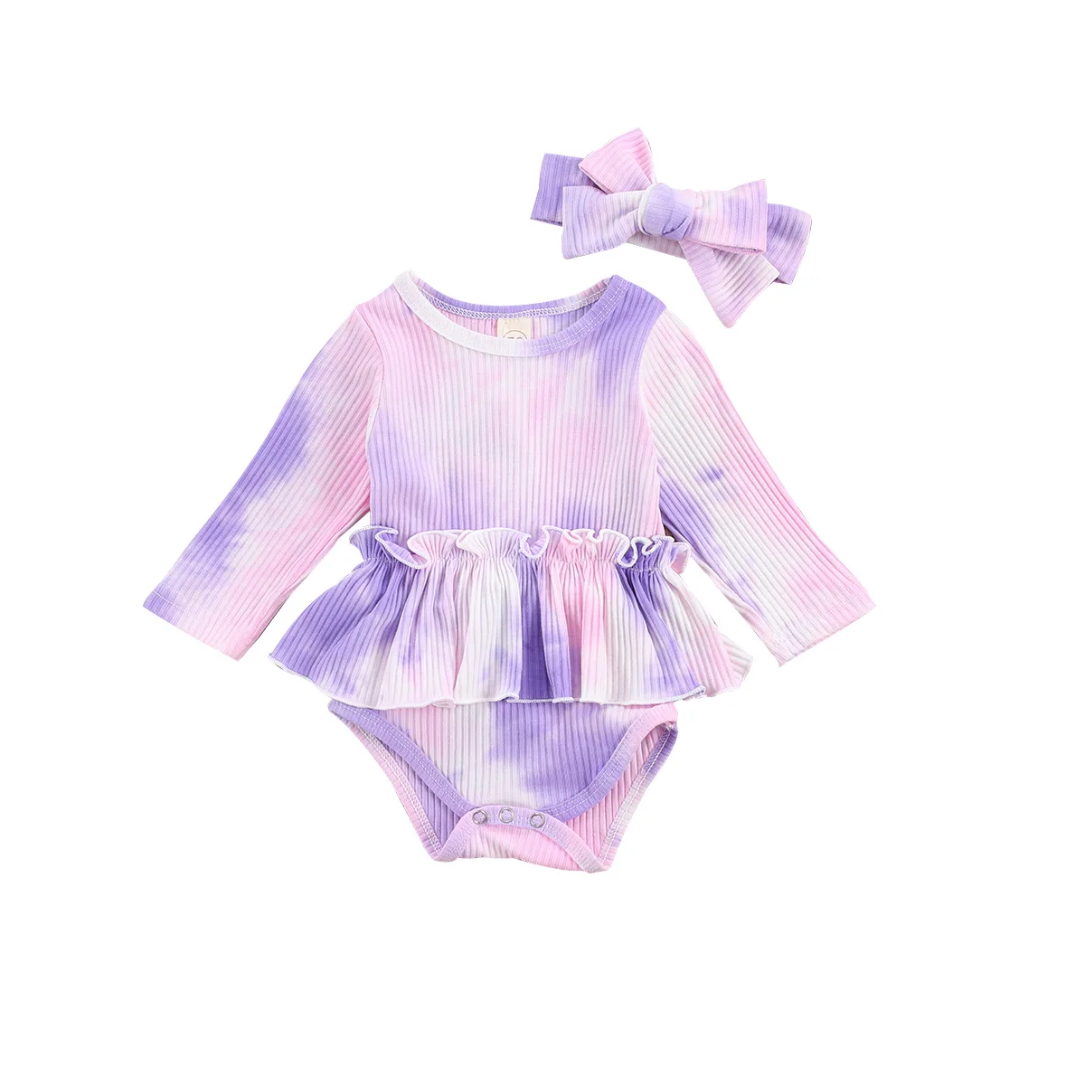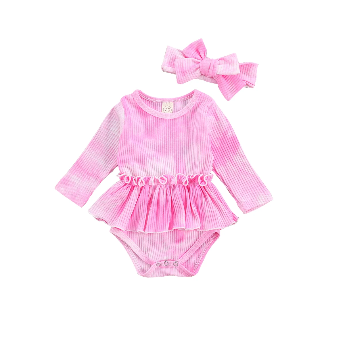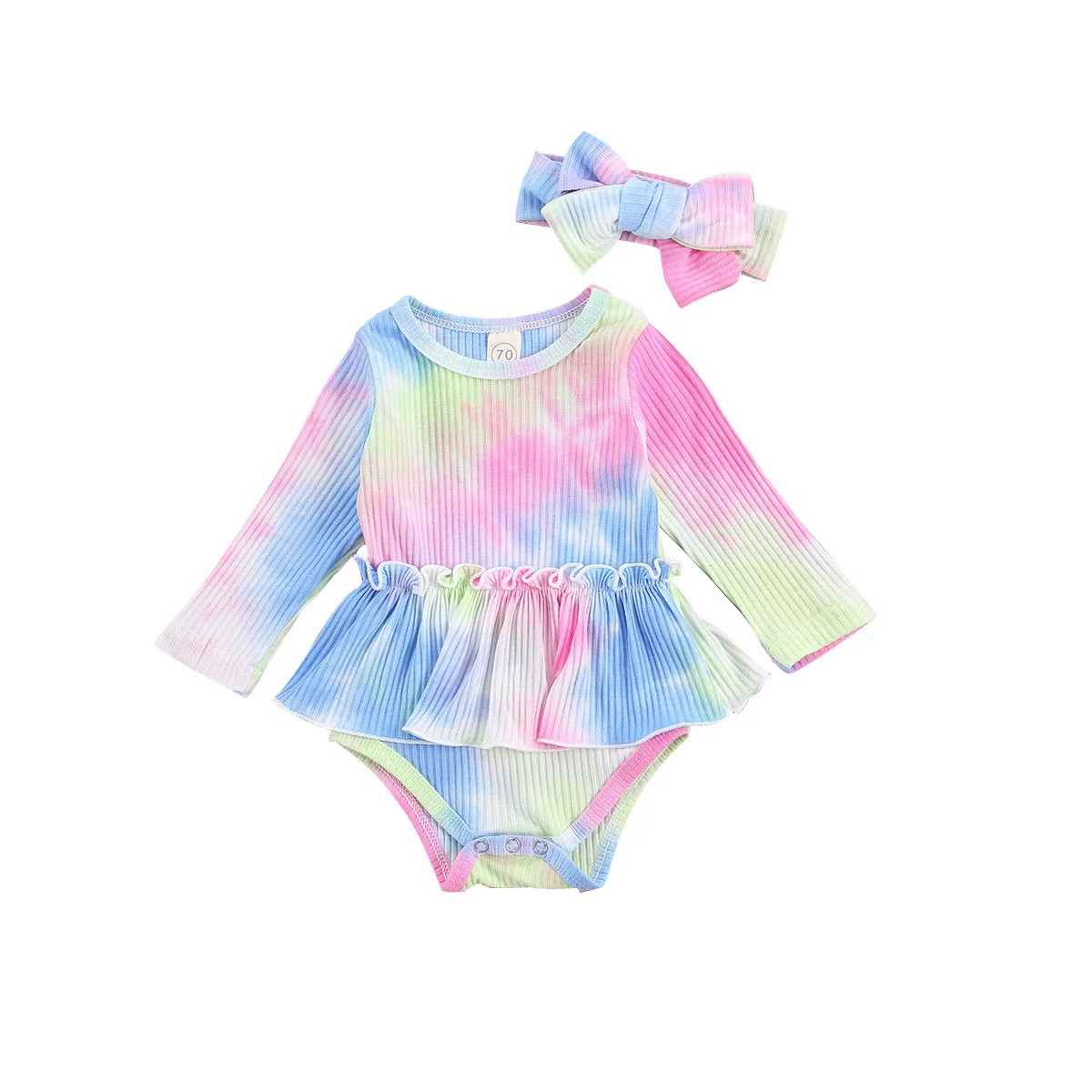 Imcute Fall Girls Tie-dye Clothes Set Toddler Long Sleeve Baby Tutu Skirts Jumpsuit + Bow-knot Headband for Baby Girls Bodysuits