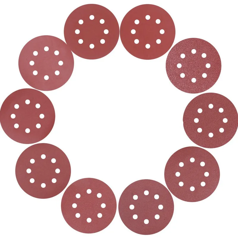 10 шт., 5 дюймов, 125 мм, Круглый шлифовальный диск, 8 отверстий, листы песка, Зернистость 40-2000