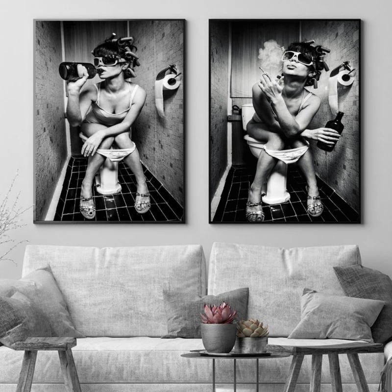 Картина на холсте, черно-белая, с изображением сексуальной девушки в туалете, художественные плакаты и принты