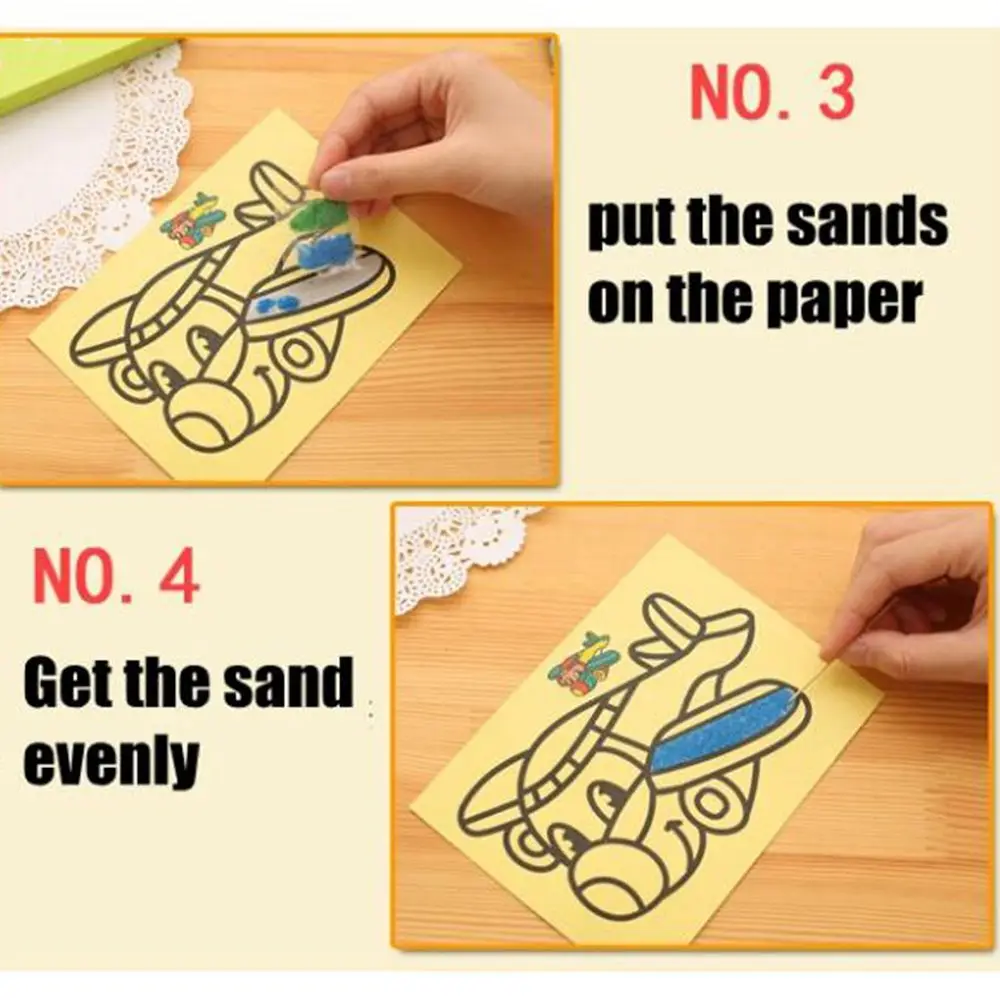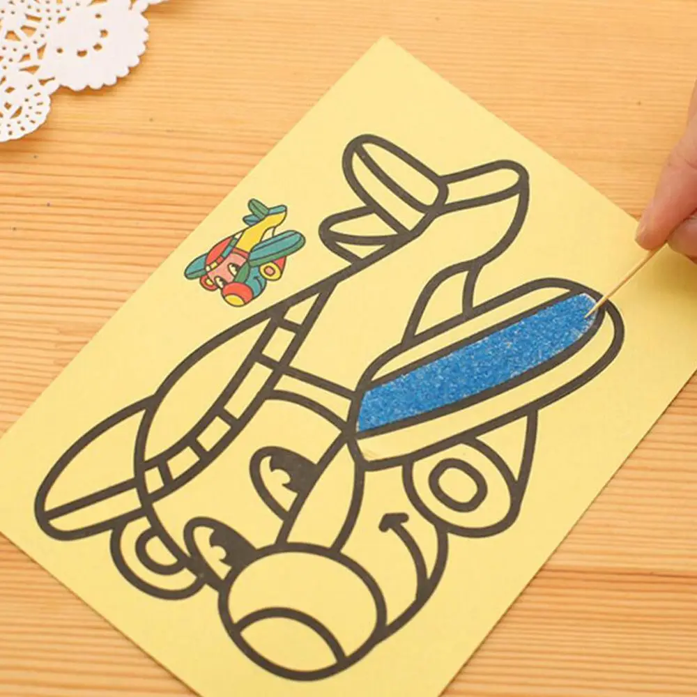 Мультфильм красочный песок живопись искусство творческие игрушки для рисования песок бумага искусство ремесла детские игрушки для детей обучающий образовательный подарок