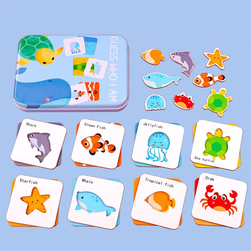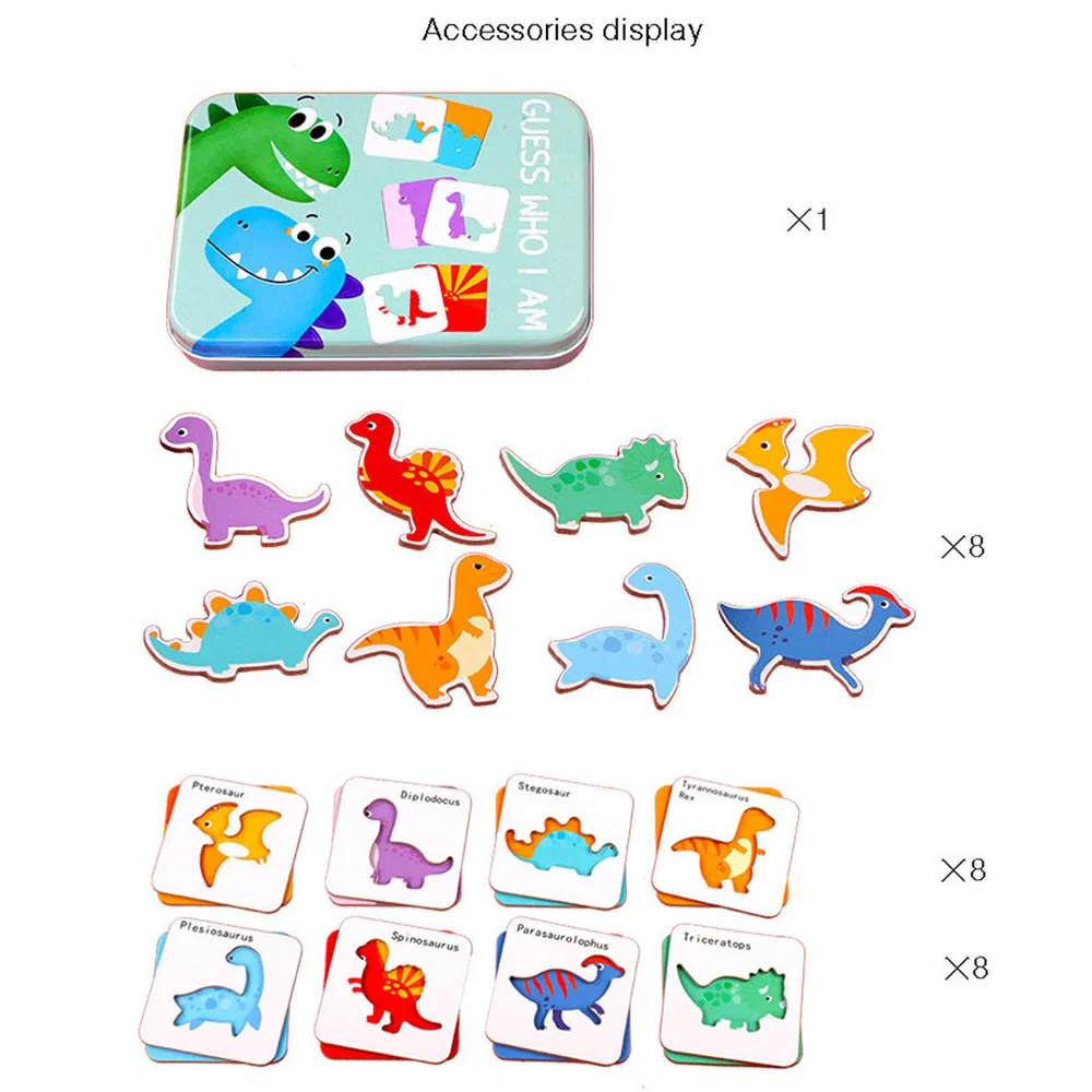 Детский креативный деревянный пазл, железная коробка, игрушки, Мультяшные животные, динозавр, головоломка, Когнитивная интерактивная игра, английские Обучающие карты