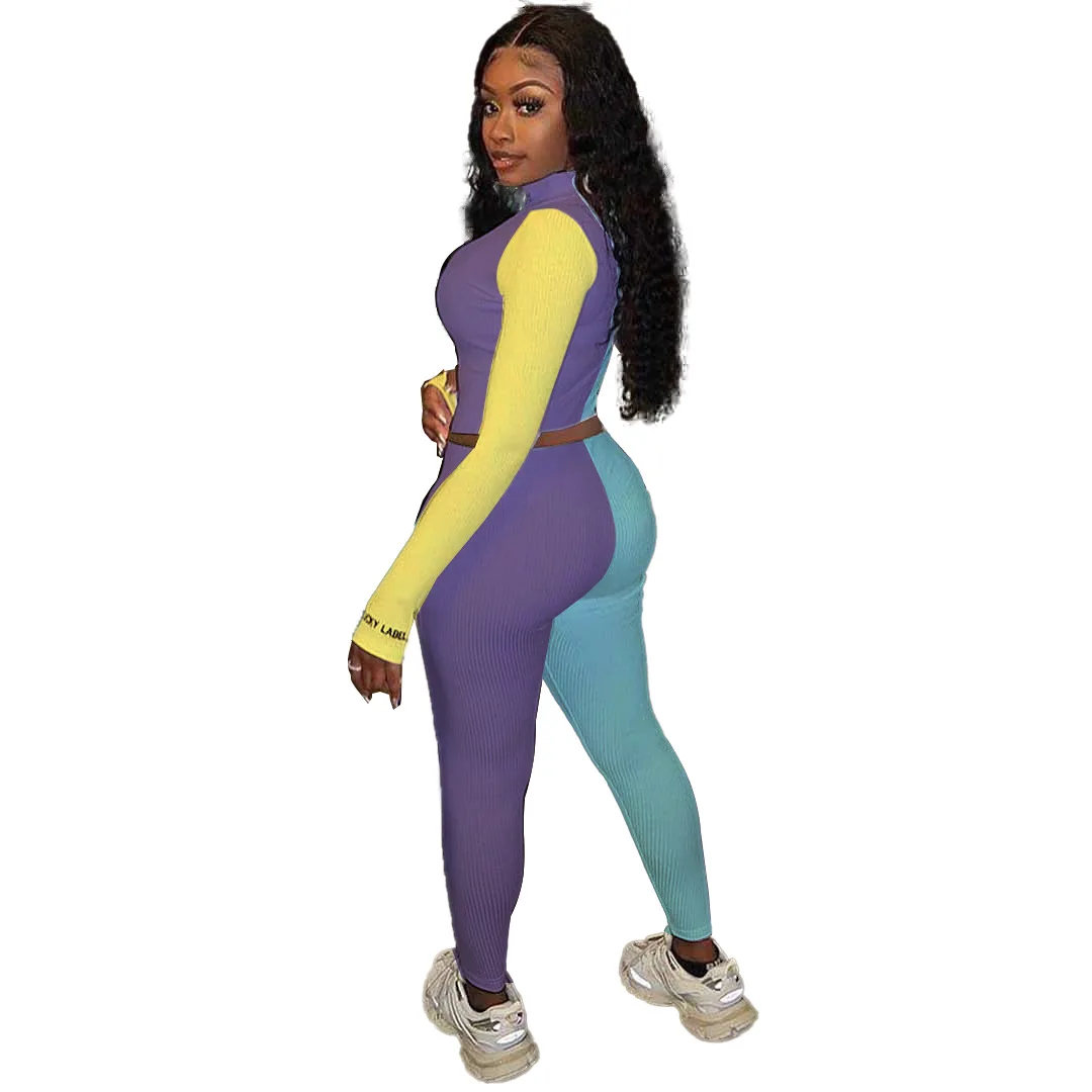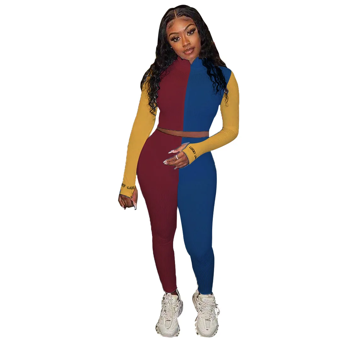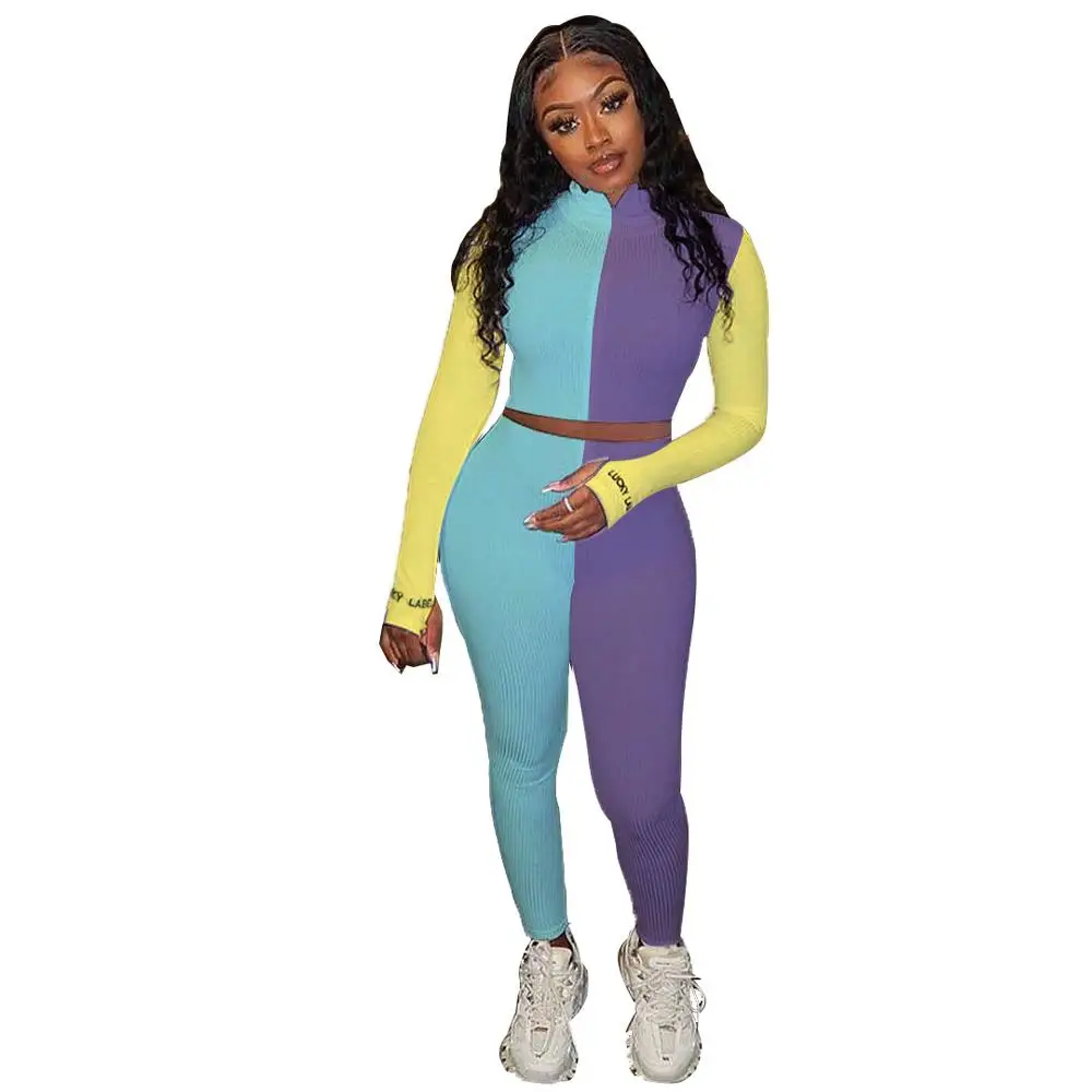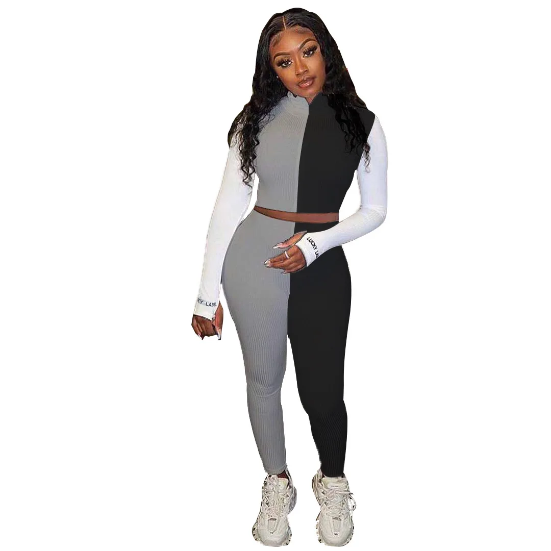Женский спортивный костюм JRRY, комплект из двух предметов в рубчик, Топ с длинным рукавом и штаны, комплект из двух предметов, спортивный костюм в рубчик с приподнятой линией, уличная одежда